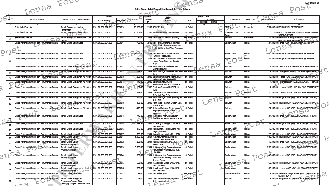 LENSAPOST.NET – Sebanyak 876 bidang tanah Pemerintah Kota Sabang tidak memiliki sertifikat.