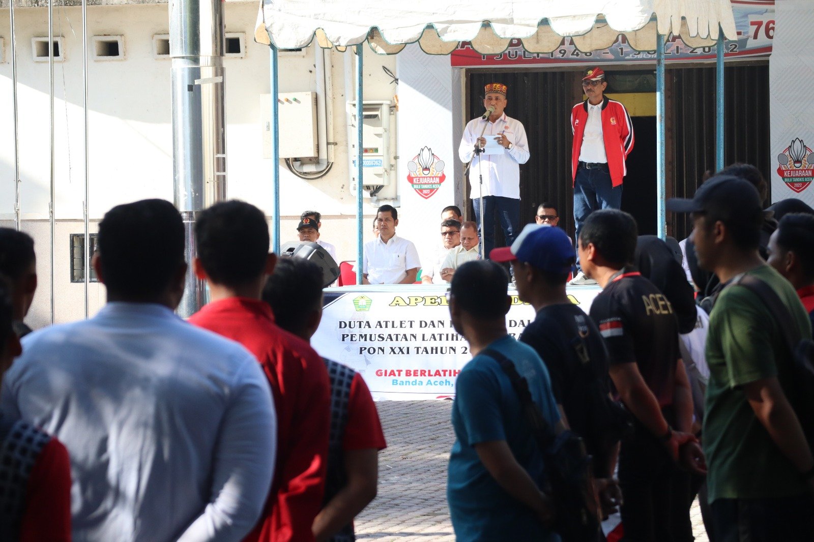 Berlangsung di halaman GOR KONI Aceh, Senin pagi 20 Februari 2022, apel diikuti ratusan atlet dan pelatih, dari berbagai cabang olahraga yang tengah dipersiapkan menuju PON XXI tahun 2024 Aceh-Sumut.