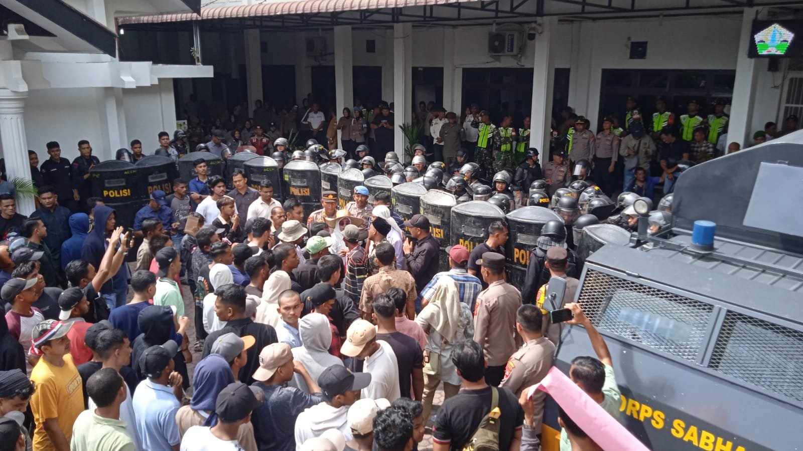 Situasi sempat memanas ketika massa berhasil memasuki area halaman kantor.