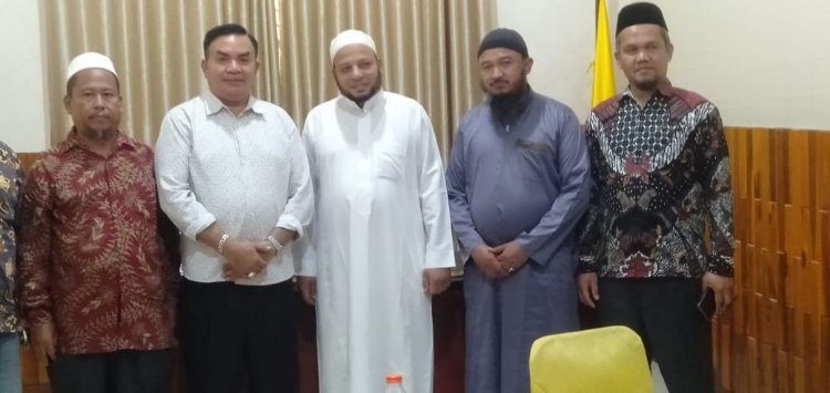 Bupati Terpilih Aceh Tenggara, HM. Salim Fakhry bersama Manager Of Company Darul Hadist, didampingi oleh Guru Besar Qiroat Pesantren Islam An Nash Cibinong, Jawa Barat, Ustadz Teuku Muhammad Sanusi