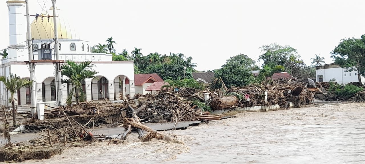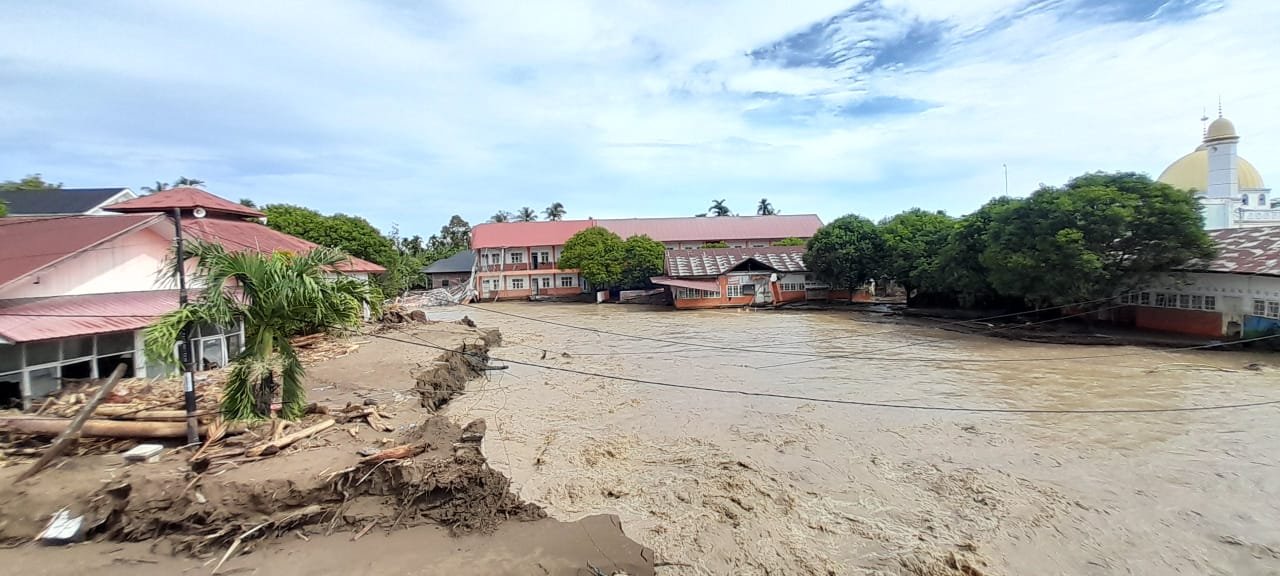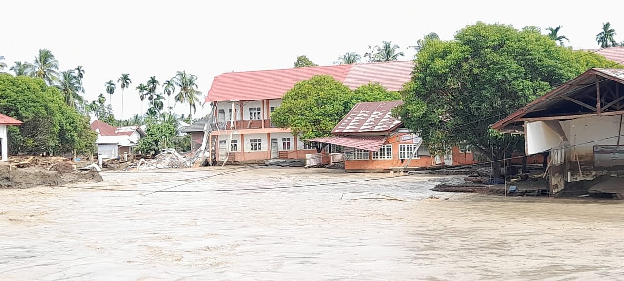 “Kondisi sekolah kami sangat parah. Tanah di sekitar bangunan sudah terkikis, aliran sungai terpecah dan membentuk jalur baru yang tepat mengarah ke sekolah. Banyak fasilitas, inventaris, dan infrastruktur yang tidak bisa digunakan lagi,” ungkapnya, kepada Lensapost, Minggu 7 Desember 2025 lewat keterangan tertulis.