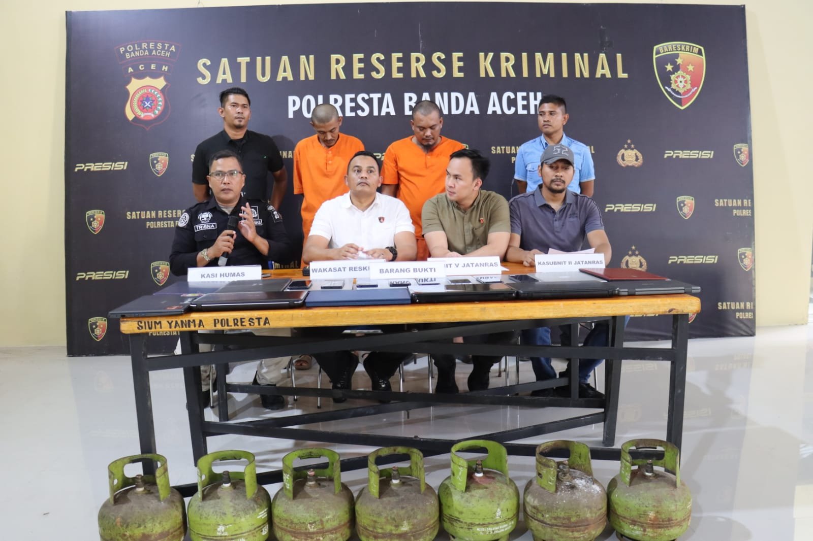 Dalam kasus ini petugas ikut menyita barang bukti berupa 14 unit laptop yang diduga kuat merupakan hasil curian, 8 unit ponsel, serta 7 tabung gas elpiji 3 kilogram.