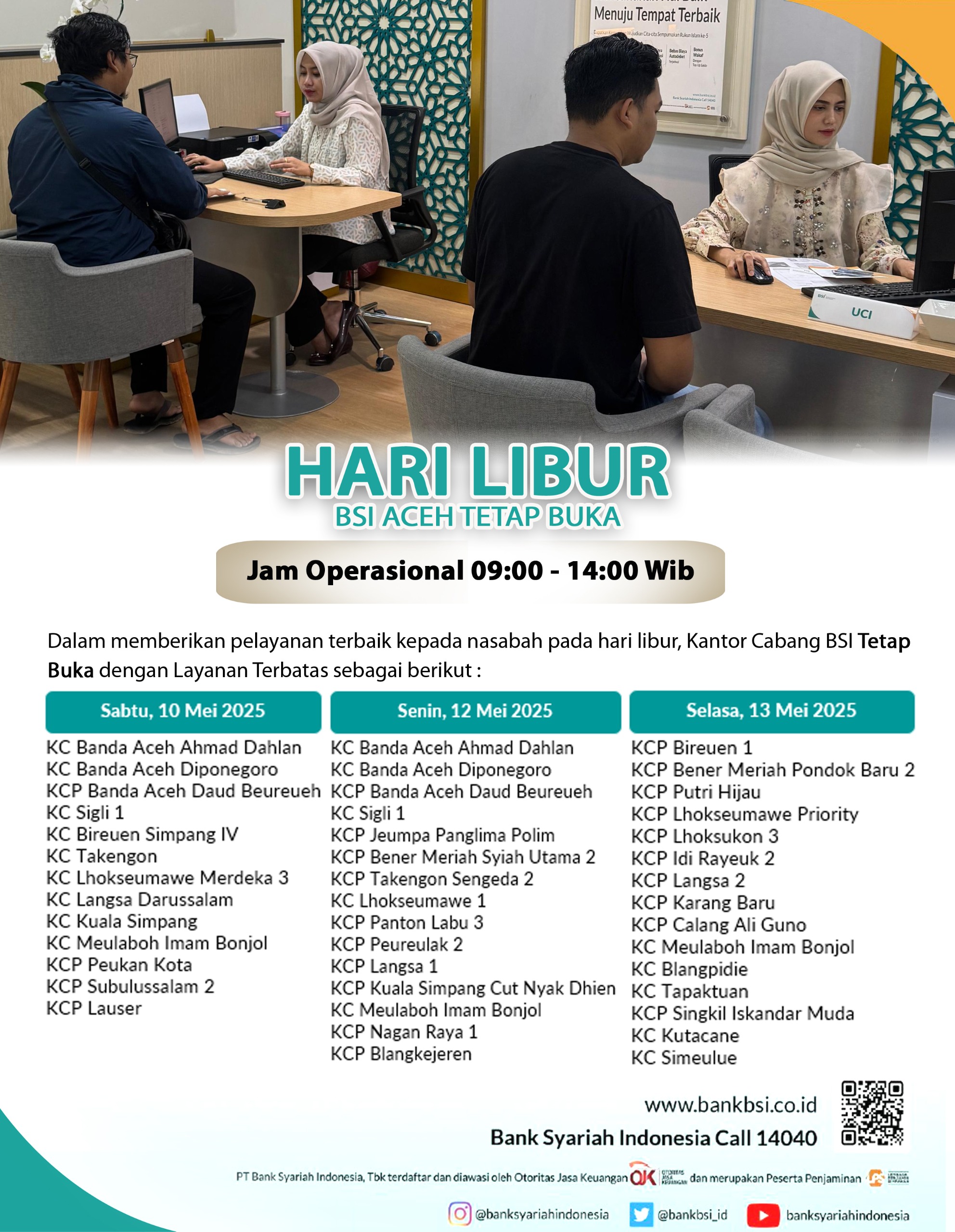 BSI Aceh Tetap Buka Pada Hari Libur Nasional