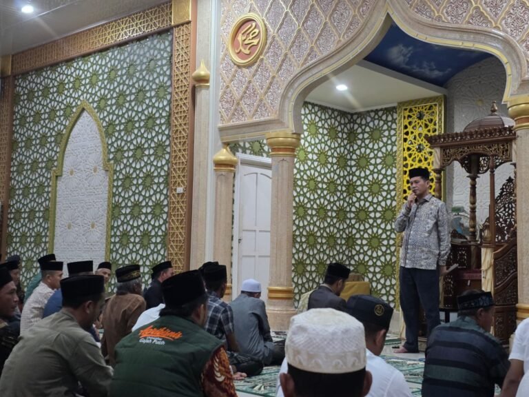 LENSAPOST.NET – Bupati Aceh Selatan H. Mirwan MS melaksanakan Safari Ramadhan di Masjid Al-Mawaddah, Gampong Bukit Gadeng, Kecamatan Kota Bahagia, Kabupaten Aceh Selatan, Sabtu (14/3/2026) malam.