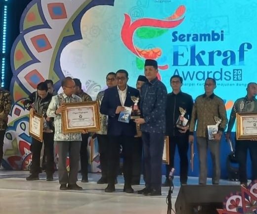 Adapun penghargaan itu diserahkan langsung oleh Menteri Ekonomi Kreatif RI T. Riefky Harsya didampingi Pemimpin Perusahaan Serambi Indonesia Mohd Din.