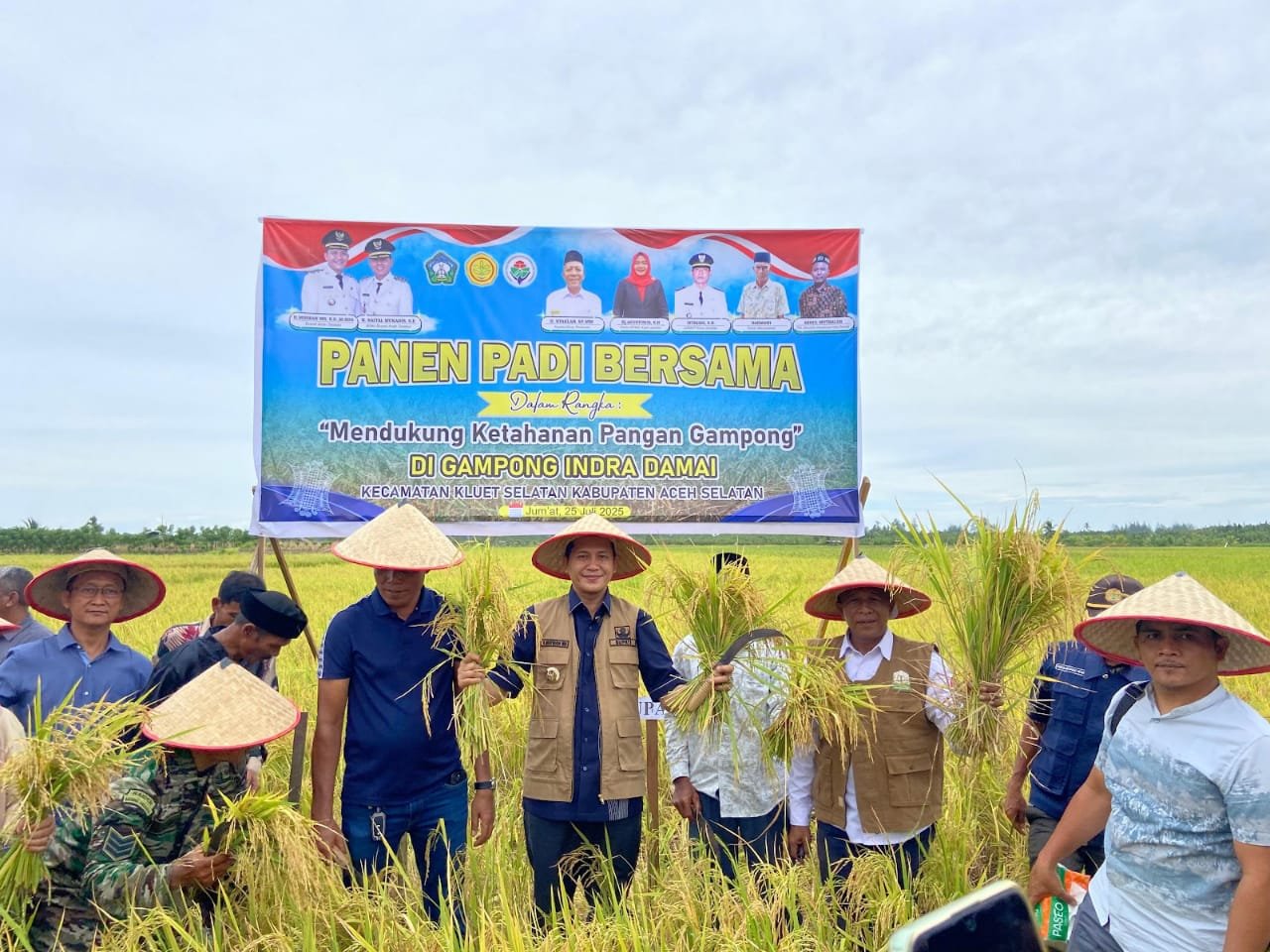 LENSAPOST.NET- Bupati Aceh Selatan H Mirwan MS turun langsung ke sawah dalam rangka panen padi bersama di Gampong Indra Damai kecamatan Kluet Selatan, Jum’at 25 Juli 2025.