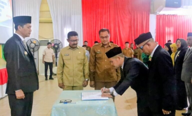 LENSAPOST.NET – Bupati Aceh Selatan, H. Mirwan M.S, resmi melantik 29 pejabat administrator, pengawas, dan fungsional di lingkungan Pemerintah Kabupaten (Pemkab) Aceh Selatan. Prosesi pelantikan berlangsung di Gedung Rumoh Agam, Tapaktuan, Senin (29/9/2025).