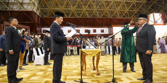 LENSAPOST.NET— Pj Gubernur Aceh Achmad Marzuki melantik Bustami Hamzah sebagai Sekretaris Daerah Aceh, menggantikan posisi Taqwallah. Prosesi pelantikan dan serah-terima jabatan berlangsung di Anjong Mon Mata, Komplek Meuligoe Gubernur Aceh, Kamis, 8 September 2022.