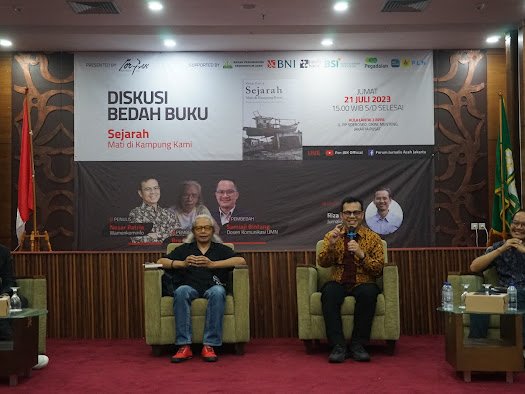 LENSAPOST.NET – Forum Jurnalis Aceh Jakarta (For-JAK) menggelar bedah buku “Sejarah Mati di Kampung Kami” karya Nezar Patria, Wakil Menteri Komunikasi dan Informatika (Wamenkominfo). Kegiatan berlangsung di Aula Lantai 2 Badan Penghubungan Pemerintah Aceh (BPPA), Jalan RP Soeroso, Cikini, Jakarta Pusat, Jumat (21/7/2023).