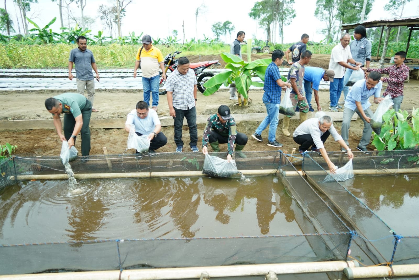 Pada akhir kunjungan ke Food Estate, dilakukan penebaran bibit lele sebanyak 10.000 ekor, sebagai upaya mendukung program Food Estate yang sedang dikembangkan oleh Korem 012/TU.***