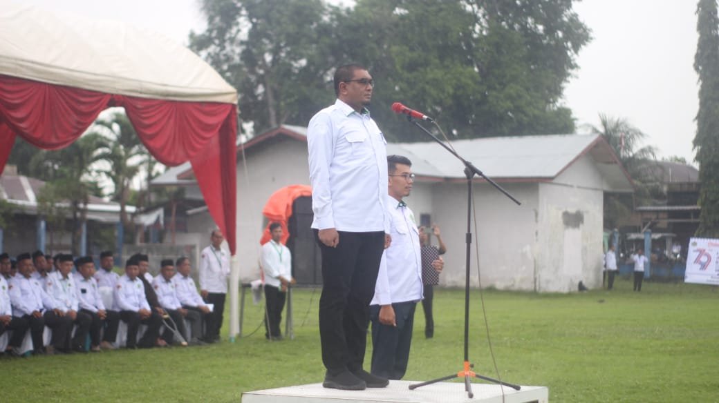 “Jangan ada yang beranjak, hari ini kita bermandikan hujan untuk mengikuti acara yang sacral ini, tapi penduhulu kita, bermandikan darah dan mengorbankan nyawa demi kita berdiri disini hari ini,” ujar Kakankemenag mengawali sambutannya seraya menyampaikan apresiasi kepada ASN yang rela hujan-hujanan hadir ke lokasi upacara.