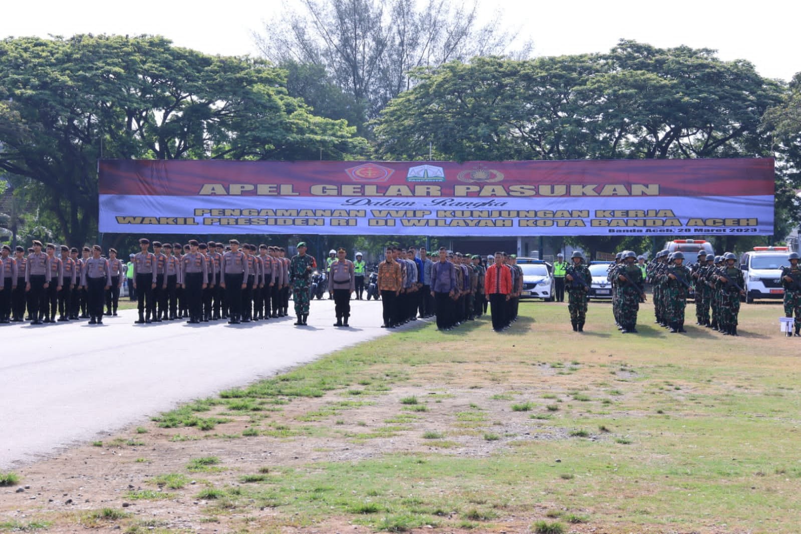 Kabid Humas Polda Aceh Kombes Joko Krisdiyanto menyampaikan, apel gelar pasukan pengamanan tersebut dilaksanakan untuk mengecek kesiapan pengamanan kedatangan Wapres.