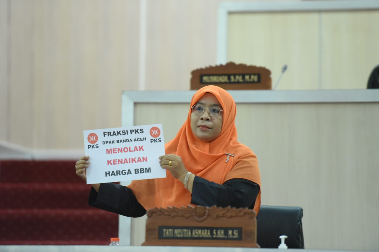 Di hadapan Pj Wali Kota Banda Aceh, Bakri Siddiq, yang hadir dalam rapat paripurna tersebut dan dinilai sebagai perpanjangan tangan pemerintah pusat di Kota Banda Aceh, Tati menjelaskan jika Fraksi PKS dengan tegas menyatakan menolak kebijakan kenaikan harga BBM.
