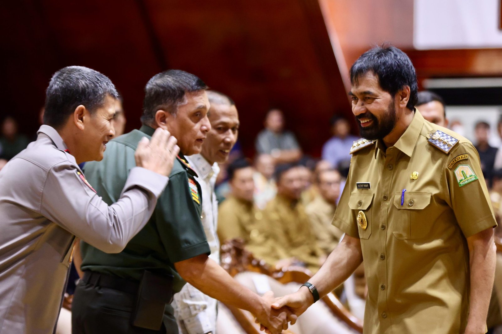 LENSAPOST.NET – Gubernur Aceh, Muzakir Manaf, didampingi Wakil Gubernur Fadhlullah, memimpin rapat bersama Forum Koordinasi Pimpinan Daerah (Forkopimda) serta seluruh Bupati dan Wali Kota se-Aceh di Anjong Mon Mata, Komplek Meuligoe Gubernur, pada Senin, 17 Maret 2025.