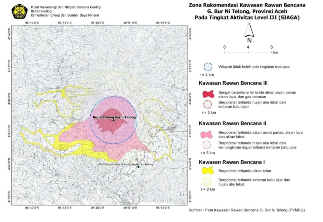 “Berdasarkan pengamatan visual dan instrumental, tingkat aktivitas Gunung Bur Ni Telong dinaikkan menjadi Level III atau Siaga sejak 30 Desember 2025 pukul 22.45 WIB,” ujarnya.