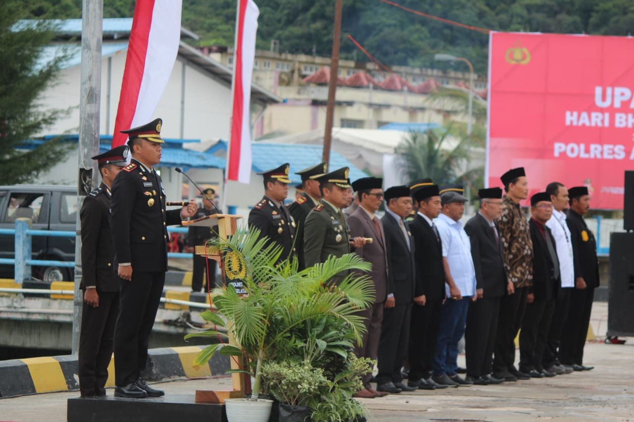 “TNI – Polri bersinergi dan berkomitmen menjaga stabilitas pemilu yang damai untuk menuju Indonesia emas. Dirgahayu Bhayangkara ke 77, Polri Presisi untuk Negeri,”kata Dandim Aceh Selatan.