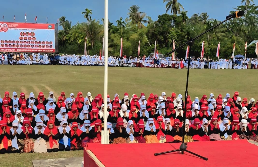 LENSAPOST.NET- Upacara peringatan Hari Ulang Tahun (HUT) Kemerdekaan Republik Indonesia ke-80 di Samadua, Aceh Selatan penuh khidmat dan meriah.Upacara berlangsung di Lapangan Bola Kaki Gema Samadua, Minggu 17 Agustus 2025.