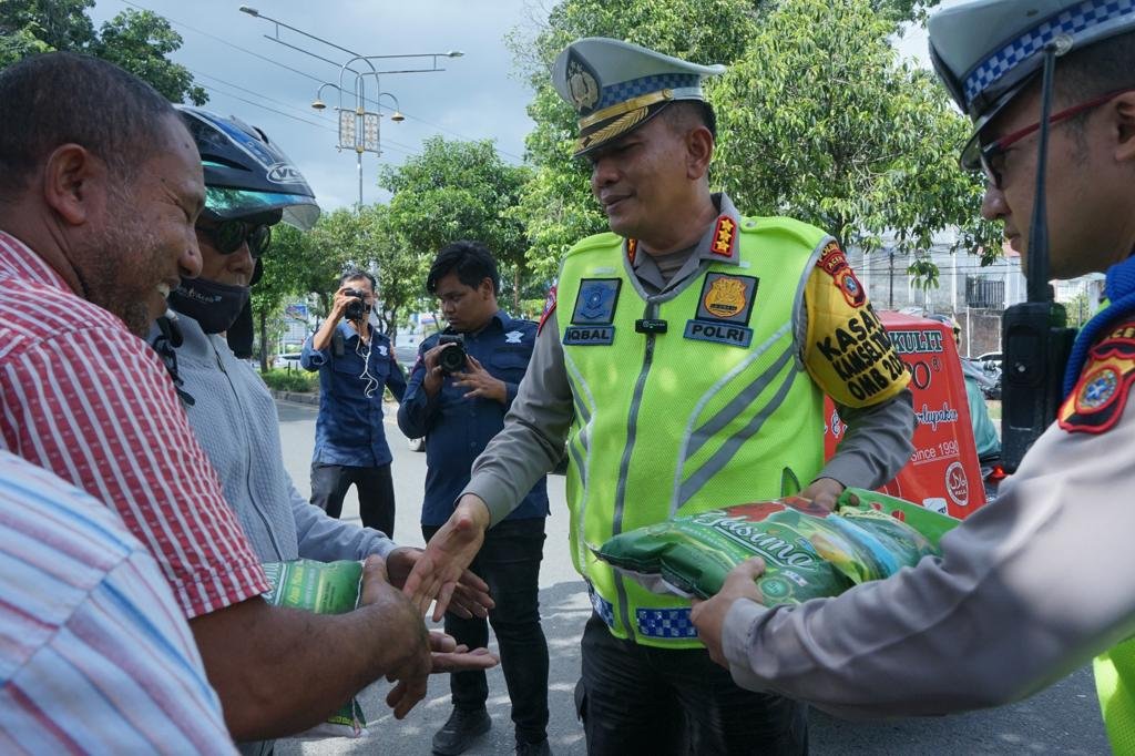 Jumat Berkah, Ditlantas Polda Aceh Berbagi dengan Cleaning Service dan Abang Becak
