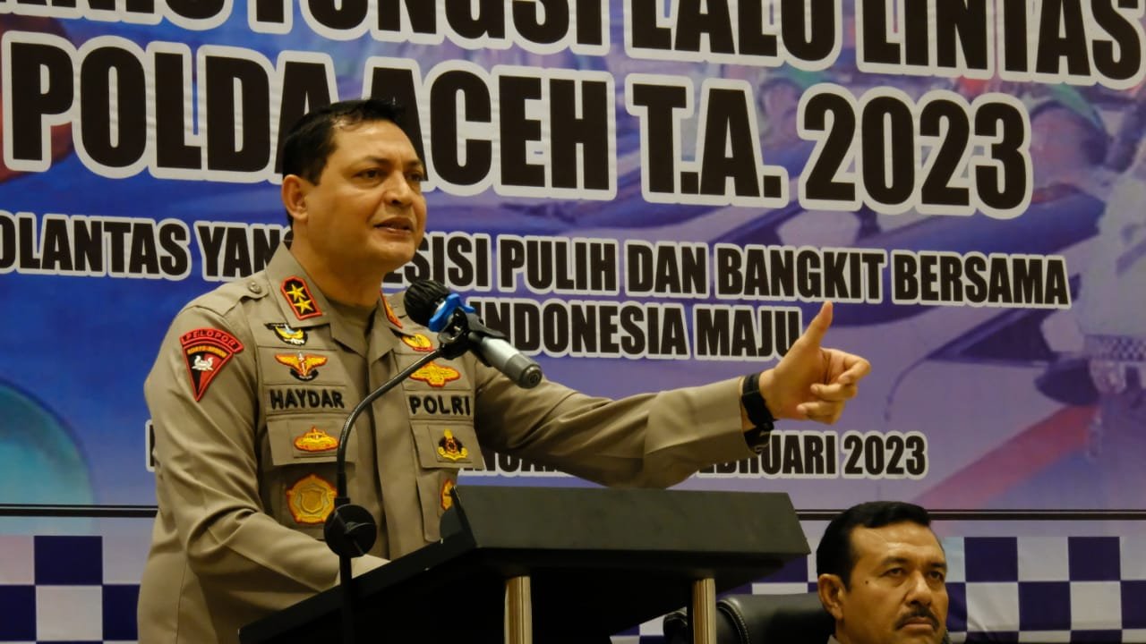 LENSAPOST.NET – Kapolda Aceh Irjen Ahmad Haydar membuka rapar kerja teknis (rakernis) fungsi lalu lintas tahun anggaran 2023 di Ball Room Hotel Ayani, Kota Banda Aceh, Selasa 31 Januari 2023.