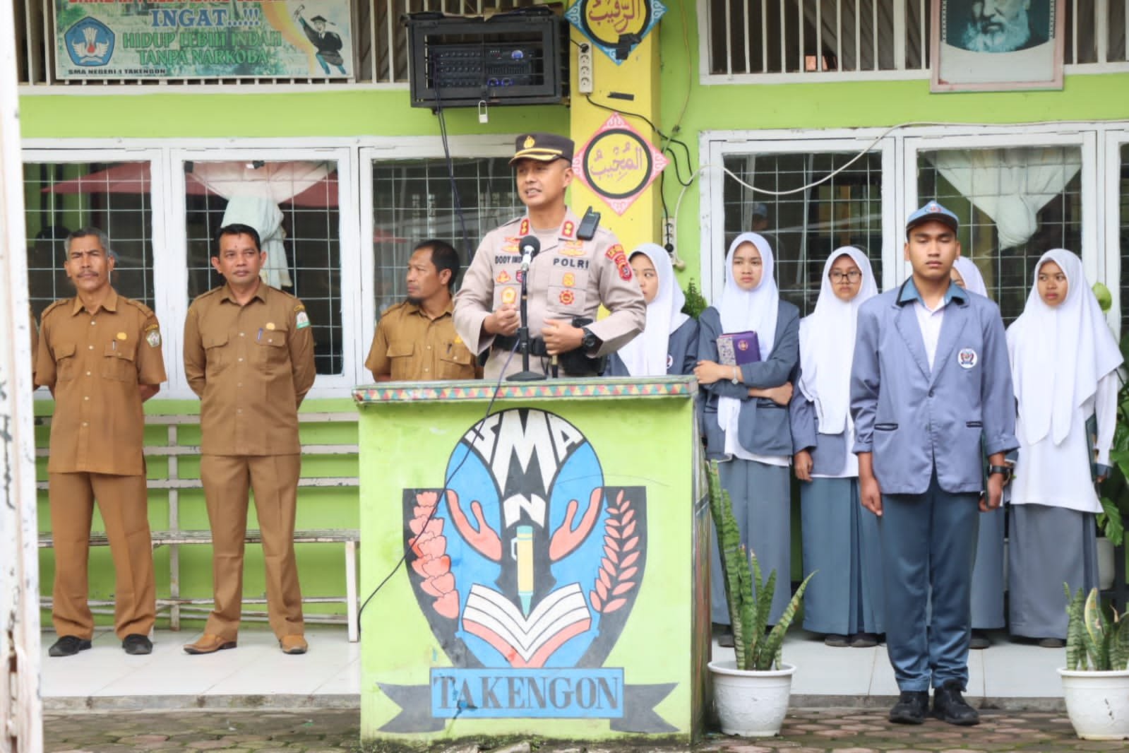 LENSAPOST.NET – Kapolres Aceh Tengah AKBP Dody Indra Eka Putra menjadi inspektur upacara (Irup) bendera di SMA Negeri 1 Takengon, Senin, 8 Mei 2023. Kegiatan tersebut merupakan program Saweu Sikula dalam rangka memelihara kamtibmas.