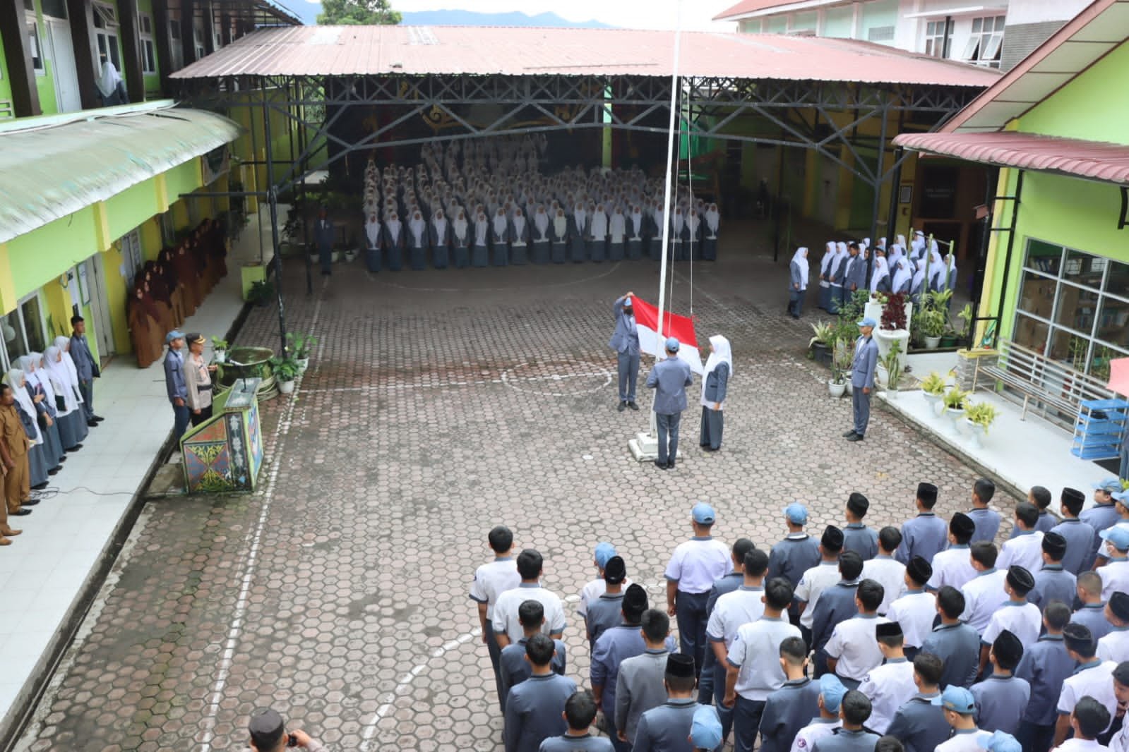 “Waspadai hoaks, jangan anarkis, serta dukung terciptanya persatuan dan kesatuan. Tanamkan bahwa tugas siswa adalah belajar dan gunakan masa sekolah untuk kegiatan positif untuk meraih prestasi,” kata AKBP Dody, di hadapan para siswa dan peserta upacara.