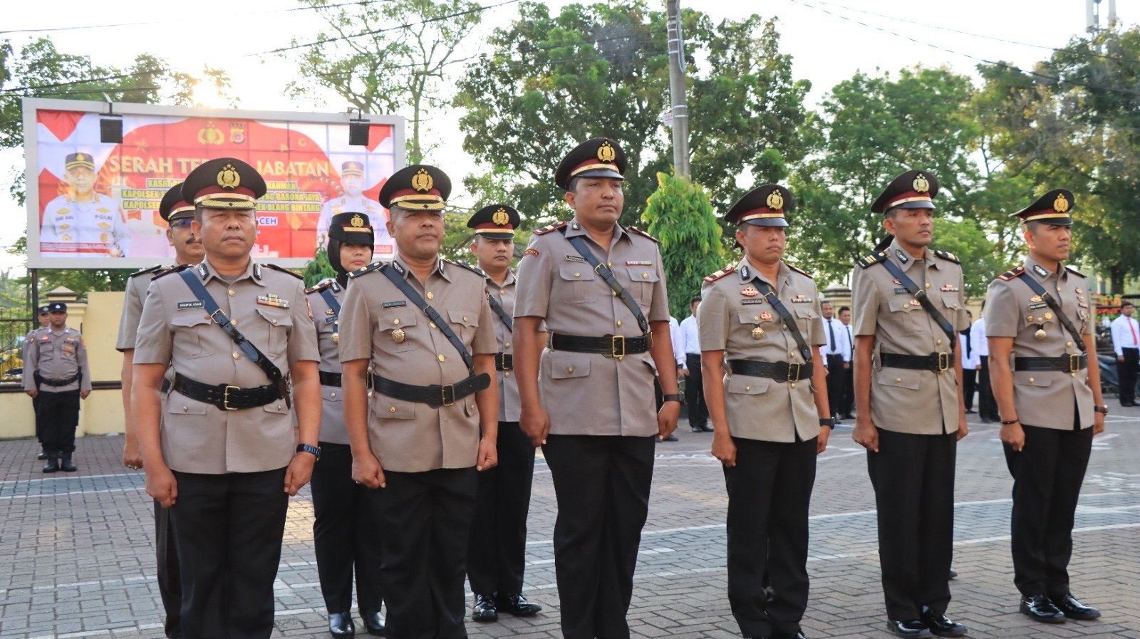 Kapolresta Banda Aceh, Kombes Pol Fahmi Irwan Ramli, SH, SIK, M.Si pimpin serah terima jabatan (Sertijab) Kasat Binmas dan Kapolsek jajaran di halaman Polresta Banda Aceh, Selasa (21/2/2023) pagi.
