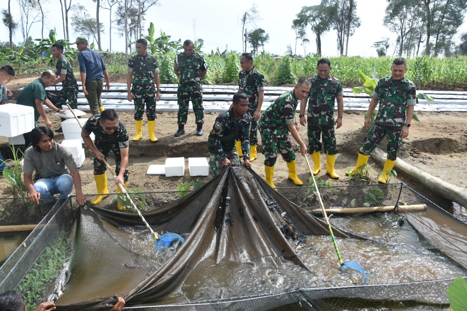 Kedatangan Kasdam IM bersama rombongan disambut langsung oleh Danrem 012/TU Kolonel Inf. Riyanto beserta para Pejabat Korem 012/TU di lokasi lahan Food Estate Korem 012/TU. Selain mengunjungi lahan food estate, Kasdam IM yang didampindi oleh Danrem 012/TU dan pejabat Kodam IM juga melakukan panen ikan lele di lokasi tersebut.