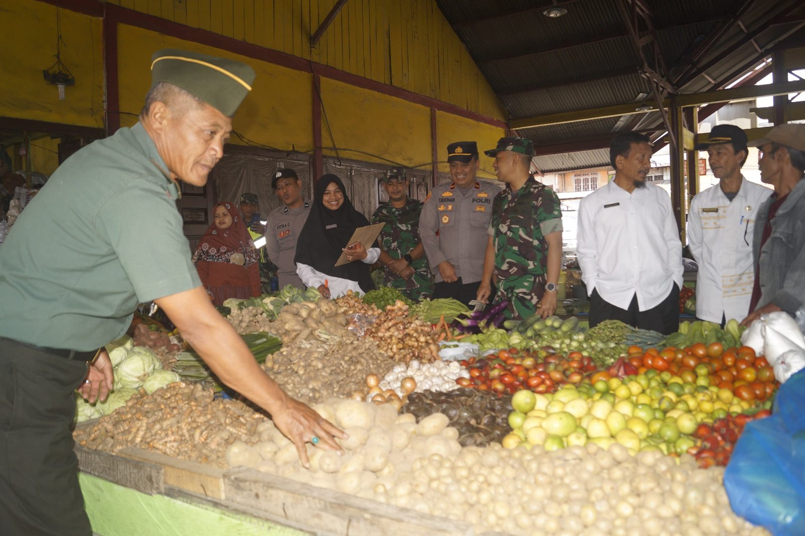 LENSAPOST.NET – Komandan Kodim 0119/BM Letkol Kav Ino Dwi Setyo Darmawan SE.M.Han, bersama dinas terkait sidak pasar tradisional guna memastikan ketersediaan kebutuhan pangan Sembilan Bahan Pokok (Sembako) di sejumlah toko tepatnya di pasar Simpang Tiga, Rabu 28 Februari 2024.