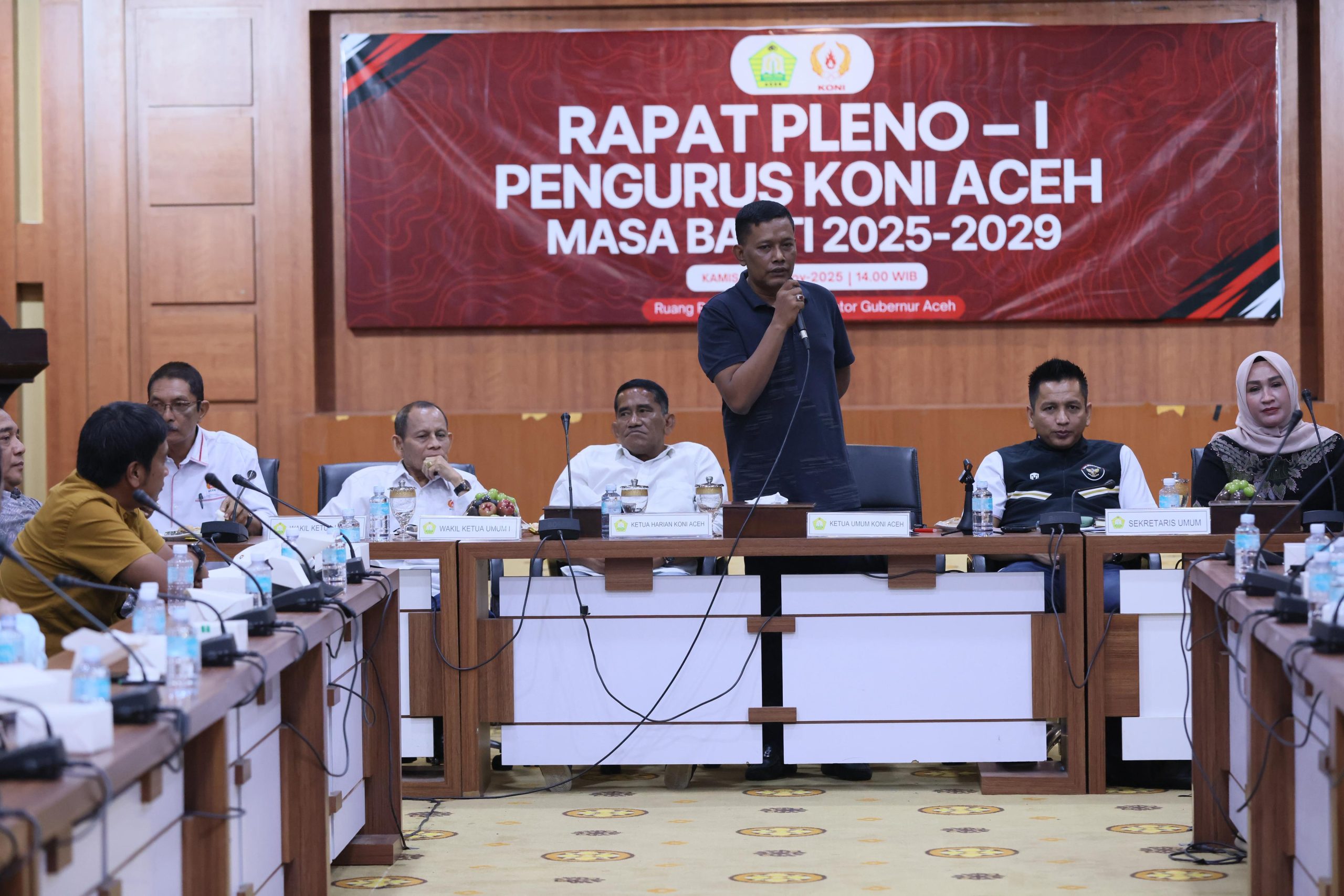 LENSAPOST.NET – Komite Olahraga Nasional Indonesia (KONI) Aceh menggelar Rapat Pleno Perdana pasca terbentuknya kepengurusan masa bakti 2025–2029 di Aula Serba Guna Setda Aceh, Kamis 6 November 2025.
