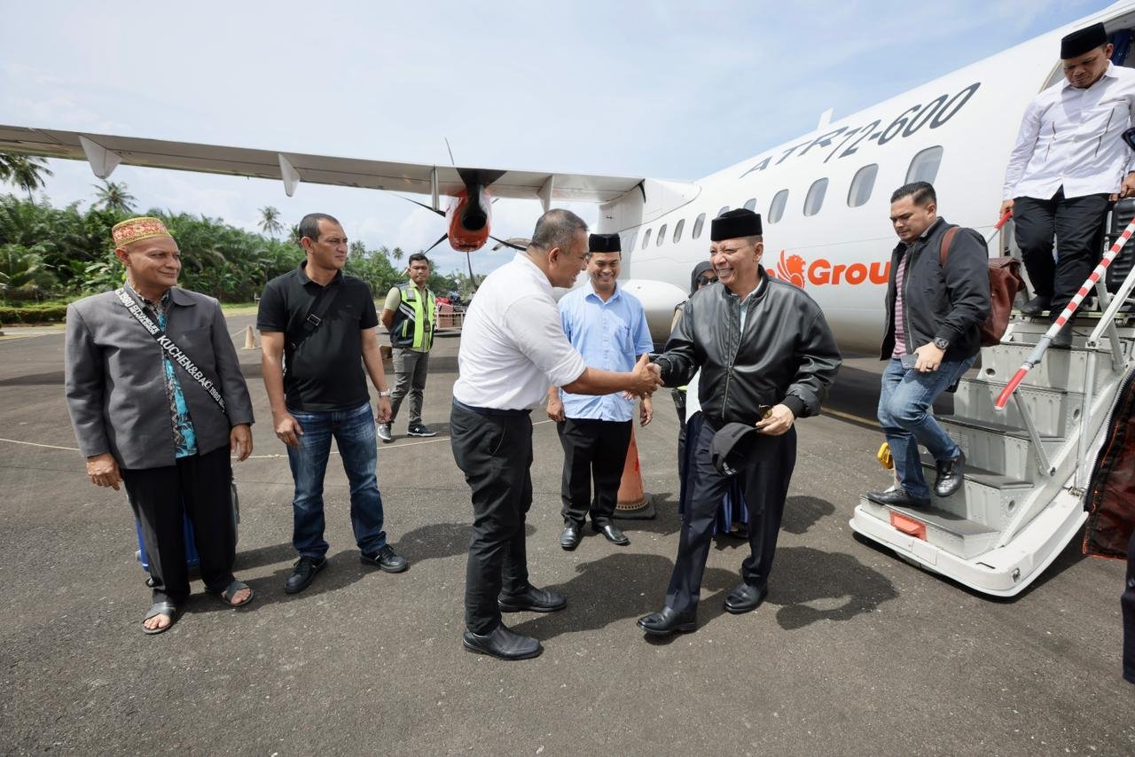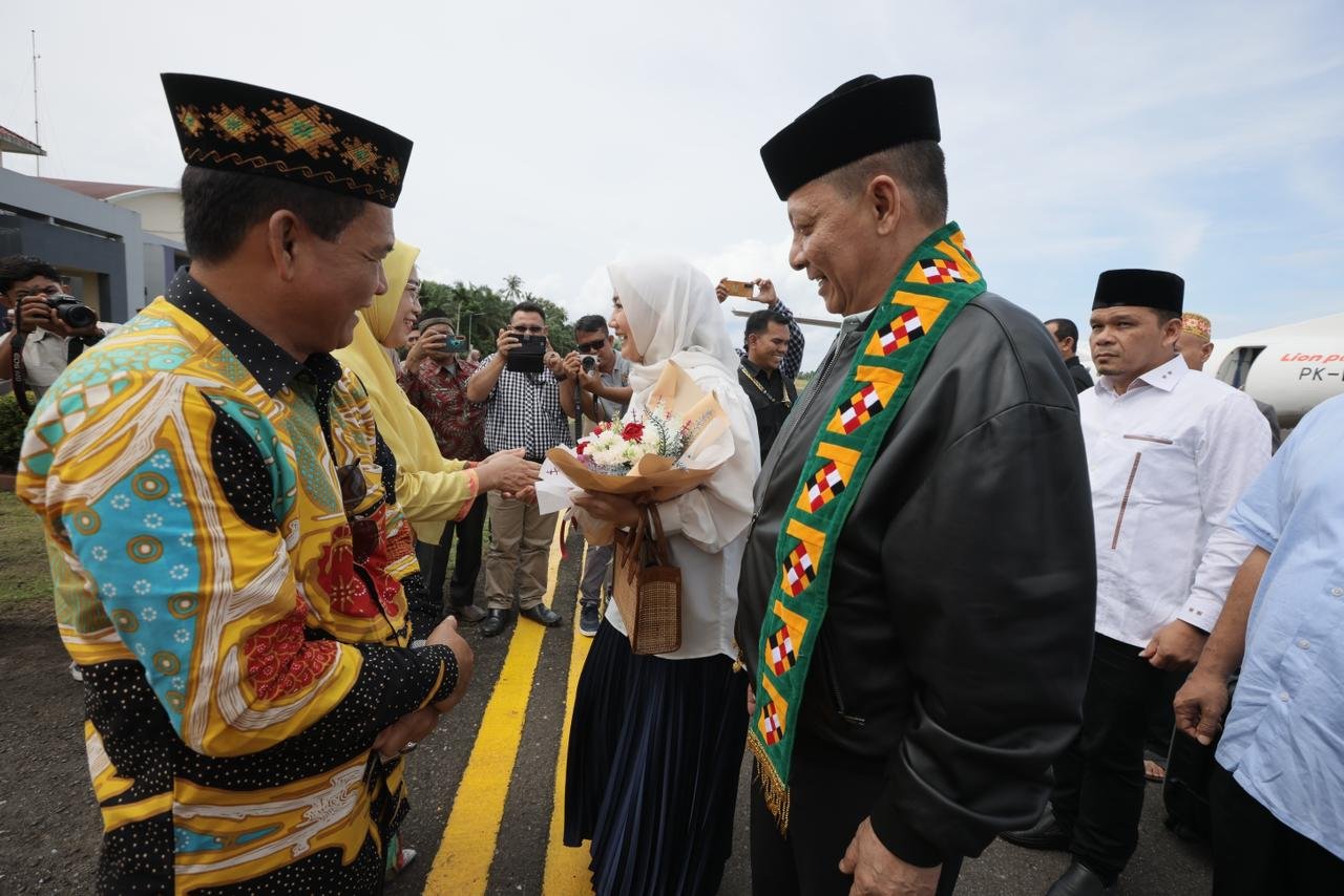 LENSAPOST.NET – Penjabat Gubernur Aceh Achmad Marzuki, didampingi Ketua TP PKK Aceh Ayu Marzuki serta rombongan, tiba di Bandara Lasikin, Sinabang. Kehadiran Gubernur disambut langsung oleh Penjabat Bupati Simeulue Ahmadliyah, beserta unsur Forkopimda Simeulue lainnya, Sabtu (25/11/2023) pagi.