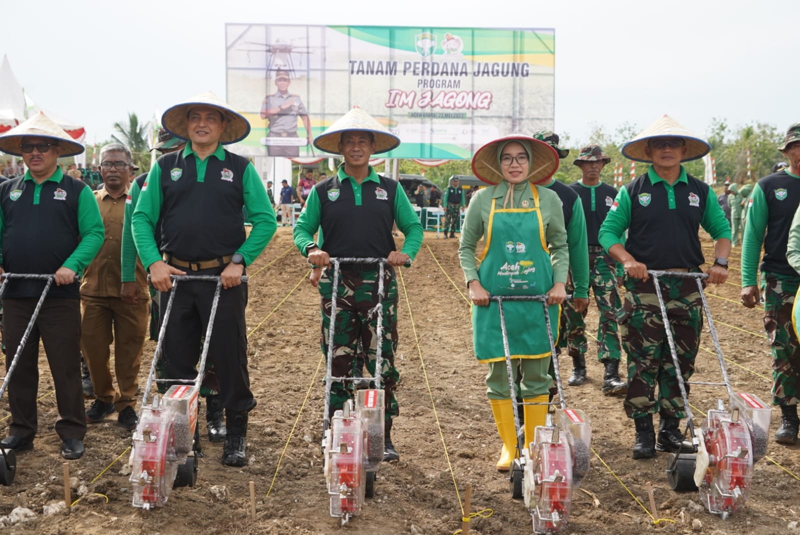 LENSAPOST.NET – Panglima Komando Daerah Militer Iskandar Muda (Pangdam IM), Mayor Jenderal TNI Novi Helmy Prasetya, S.I.P, M.I.P., didampingi Ketua Persit KCK Daerah IM Ny. Iin Novi Helmy Prasetya beserta Forkopimda Aceh melaksanakan Tanam Perdana Program I’M Jagong secara serentak di tiga wilayah Provinsi Aceh pada Selasa (23/05/23) pagi.