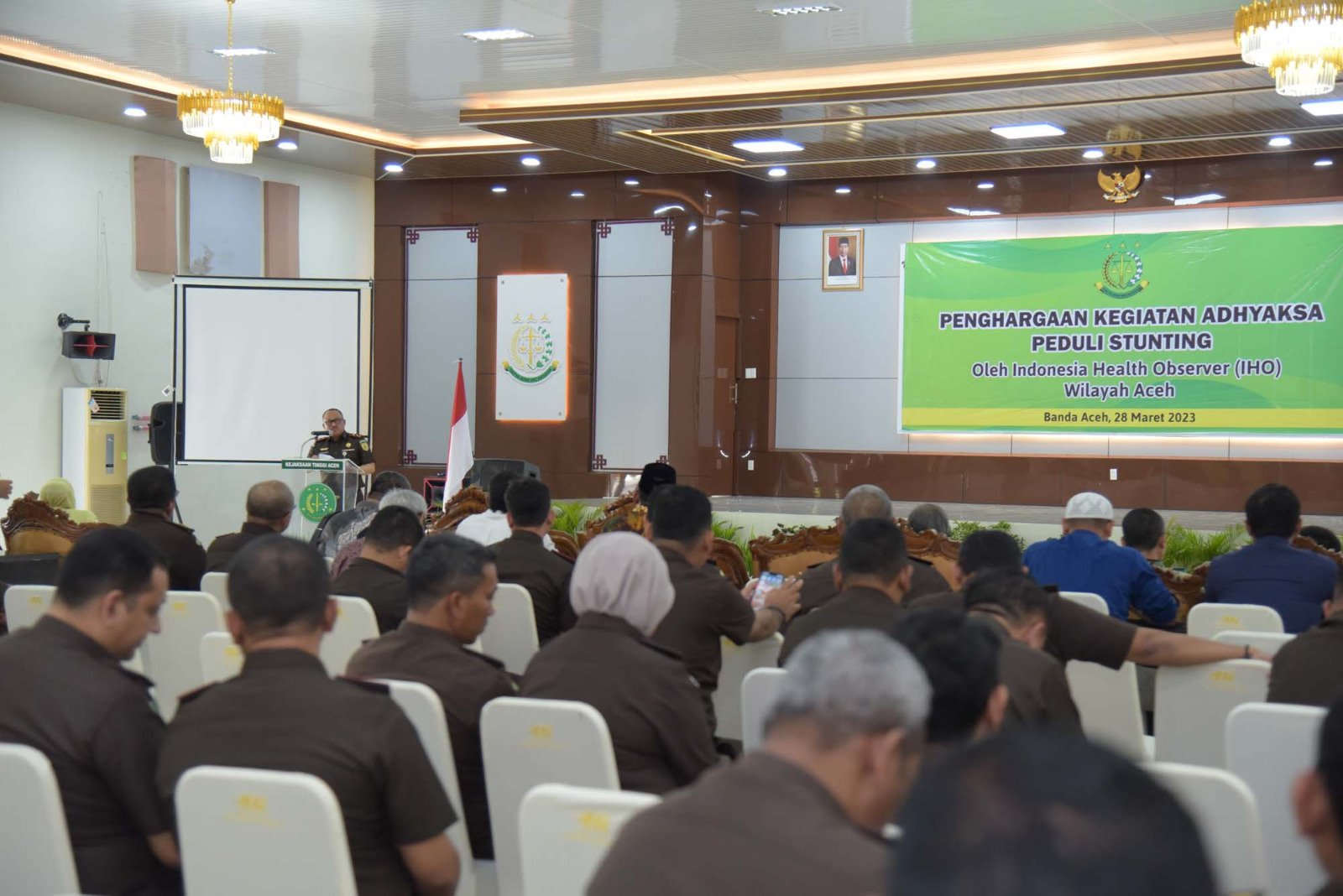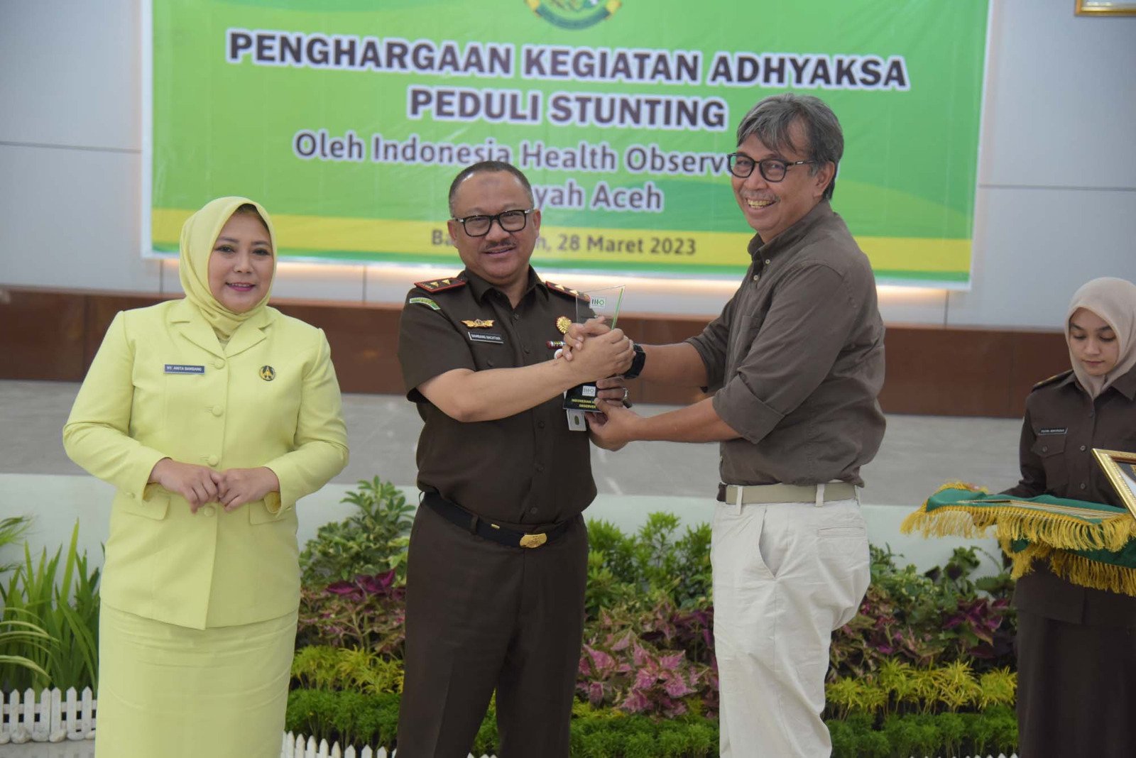 LENSAPOST.NET – Kejaksaan Tinggi (Kejati) Aceh menerima penghargaan dari Indonesia Health Observer (IHO) dalam rangka kegiatan Adhyaksa Peduli Stunting di Kejati Aceh pada Selasa 28 Maret 2023.
