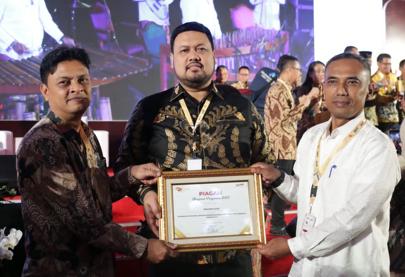 Penghargaan yang diberikan kepada Pemerintah Aceh oleh Lembaga Kebijakan Pengadaan Barang/Jasa Pemerintah (LKPP), diterima oleh Kepala Biro Unit Layanan Pengadaan (ULP) Barang dan Jasa Setda Aceh T Aznal Zahri SSTP MSi, dalam Rapat Koordinasi Nasional (Rakornas) Pengadaan Barang/Jasa (PBJ) Pemerintah tahun 2023, di Hotel Bidakara, Jakarta, Selasa, 7 November 2023.