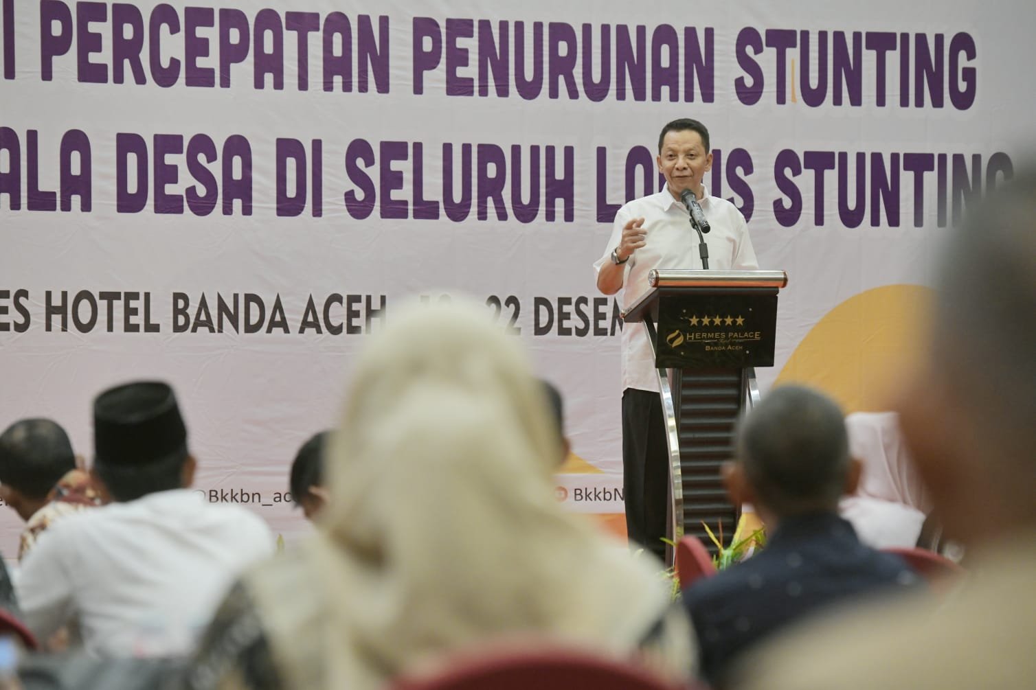 Ajakan itu disampaikan Achmad Marzuki saat membuka kegiatan sosialisasi percepatan penurunan stunting kepada para Keuchik dari seluruh lokasi khusus penanganan stunting di Aceh di Hotel Hermes Palace, Banda Aceh Kamis, 21 Desember 2023.