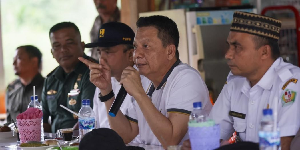Penjabat Gubernur Aceh, Achmad Marzuki, didampingi Kepala SKPA/Biro terkait, beraudiensi dengan Tokoh Masyarakat Tangse saat meninjau lokasi kerusakan jalan Beureunuen-Tangse, di Pidie, Rabu,(9/8/2023)
