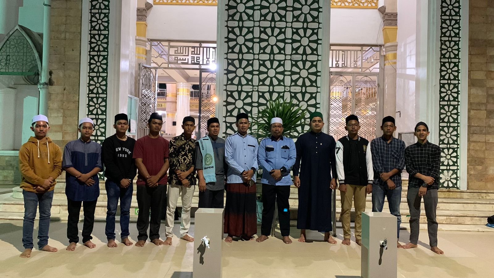 PELEPASAN PESERTA: Pengurus BKPRMI Aceh Timur bersama perwakilan guru sekolah dan madrasah serta orangtua/wali berfoto disela-sela pelepasan peserta Diklatsar Brigmas Tingkat Provinsi Aceh di Masjid Agung Darussalihin Idi, Sabtu (26/8) malam. Foto Humas BKPRMI Aceh Timur
