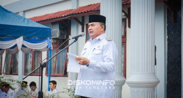 Bupati Aceh Tenggara H. M. Salim Fakhry Selaku Pembina Upacara HKN ke-61 Bertempat di Halaman Sekretariat Daerah Setempat