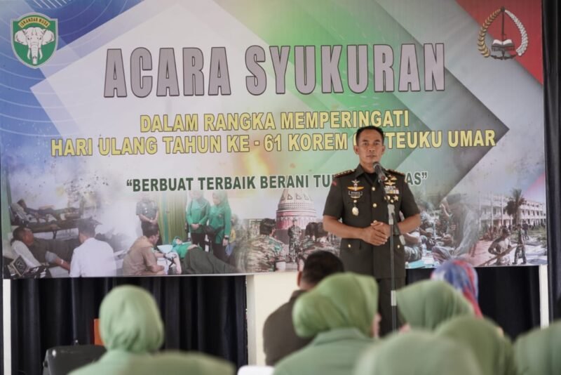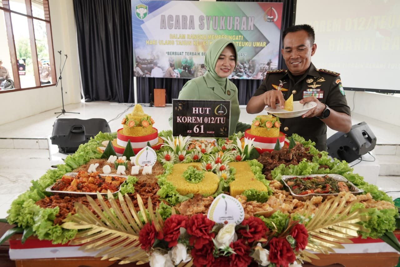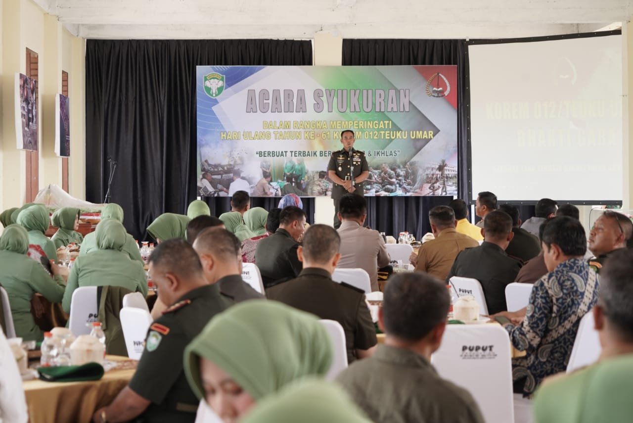 Untuk diketahui, Dalam rangka HUT Korem ke-61, telah dilaksanakan serangkaian kegiatan seperti donor darah, karya bakti, ziarah ke makam pahlawan nasional Teuku Umar, dan hari ini diadakan syukuran sebagai puncak peringatan.