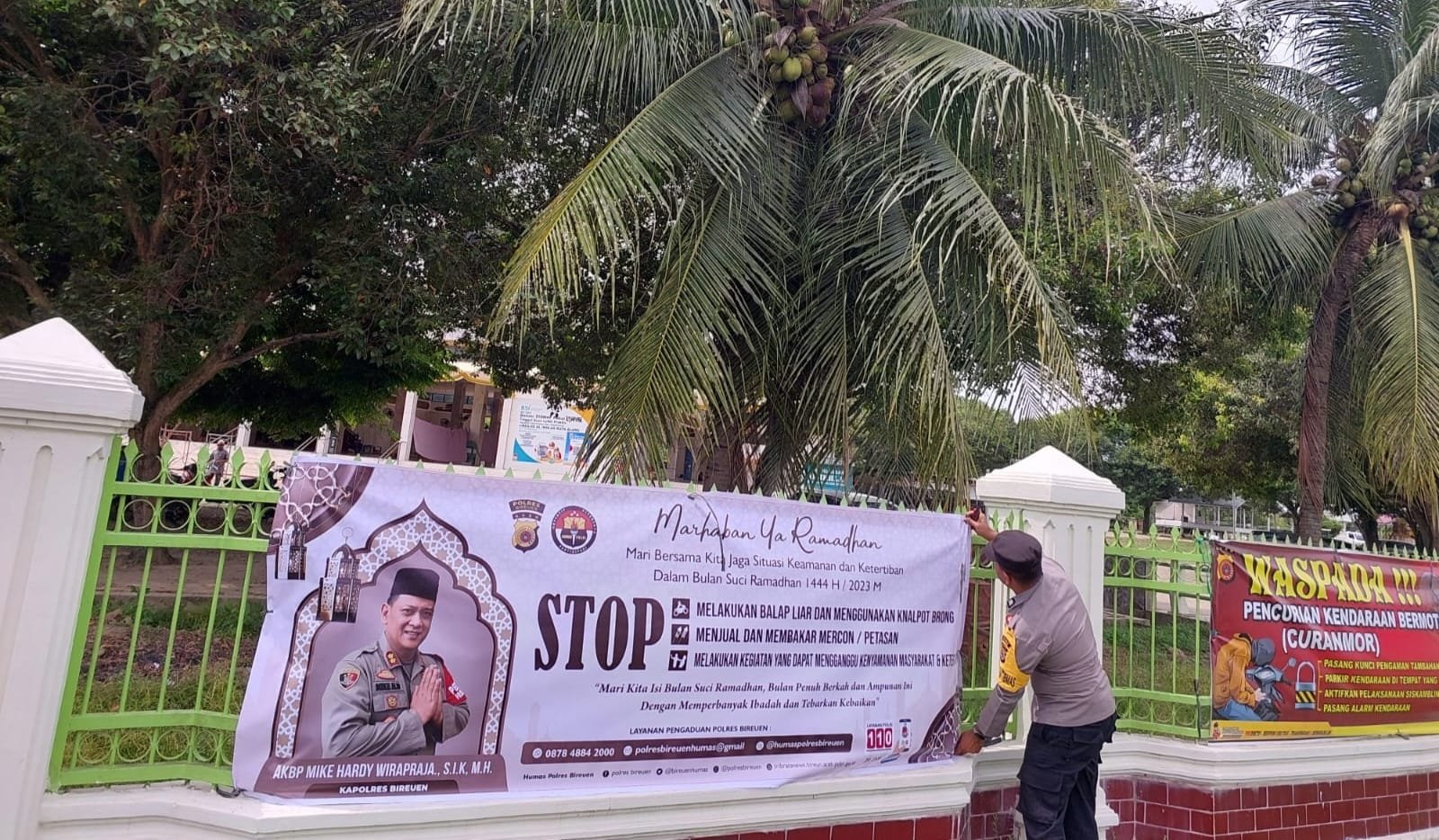 LENSAPOST.NET – Personel Polres Bireuen memasang spanduk yang berisi imbauan kepada masyarakat untuk tidak balap liar (bali) dan bakar petasan baik dalam bulan suci Ramadan maupun setelahnya.