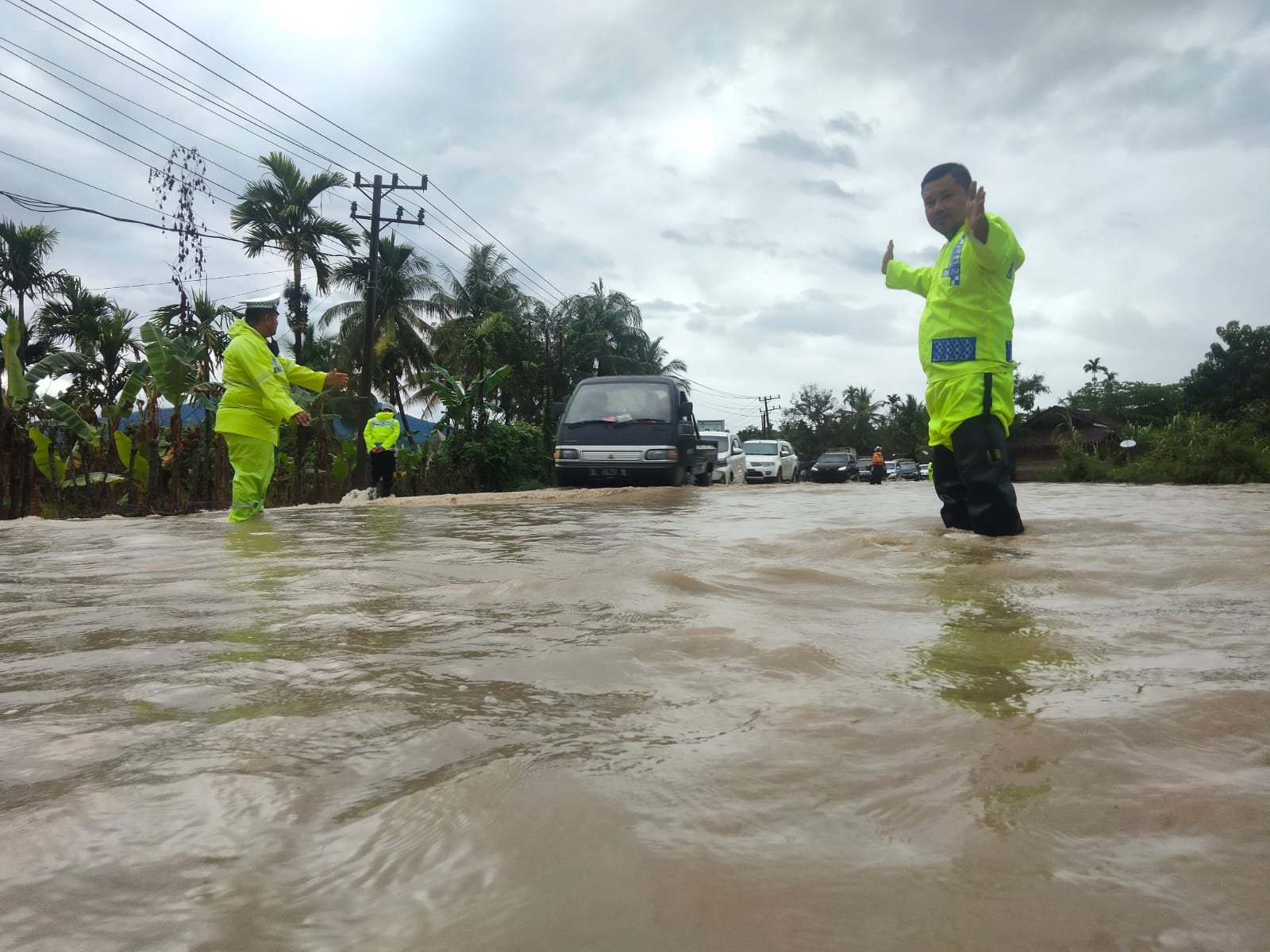 Mahruzal Hariadi menjelaskan, ketinggian air pada badan jalan capai 30-40 cm. Namun dipastikan, kendaraan masih bisa melintasi jalan tersebut dengan digiring oleh petugas agar tidak terjadi laka lantas.