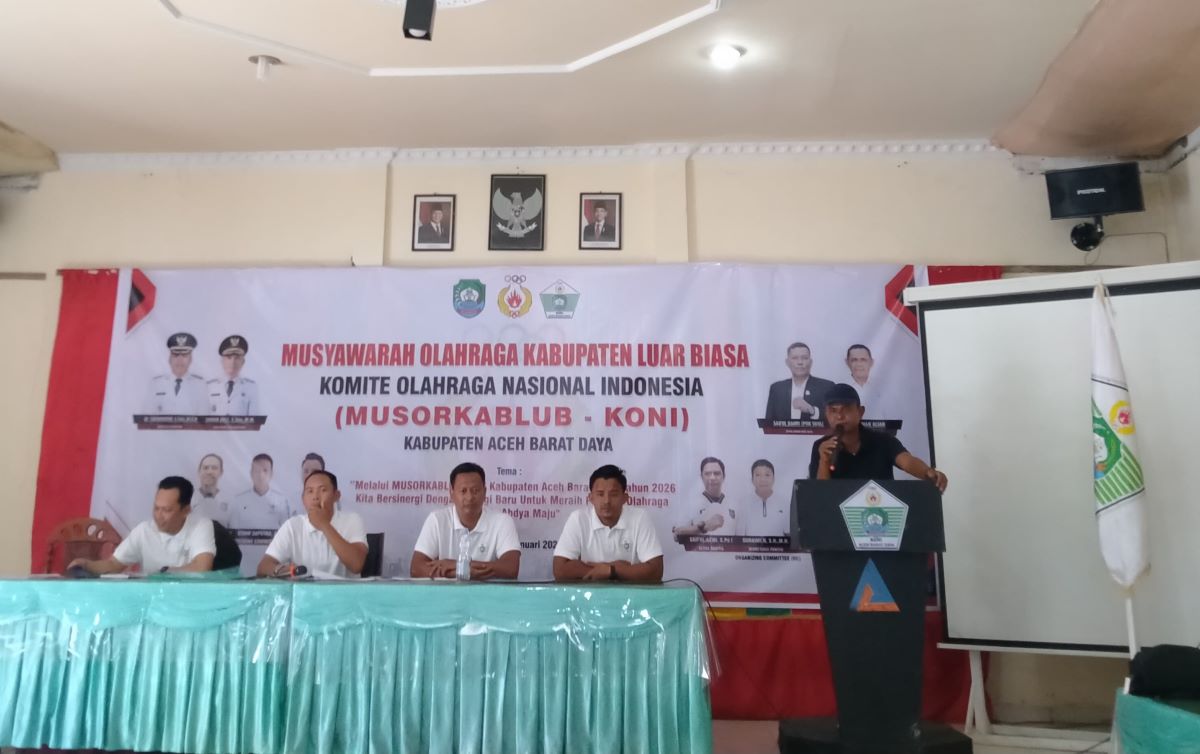 LENSAPOST.NET — Zulkarnain resmi terpilih sebagai Ketua Umum Komite Olahraga Nasional Indonesia (KONI) Kabupaten Aceh Barat Daya (Abdya) masa bakti 2026–2030.