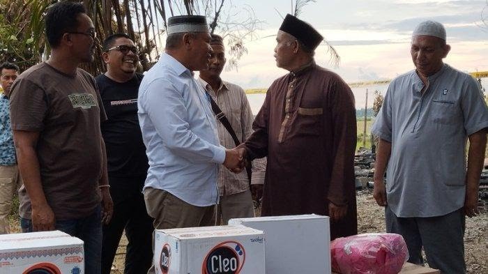 LENSAPOST.NET- Penjabat Pj Bupati Kabupaten Aceh Barat Daya (Abdya), H. Darmansah bersama rombongan menyerahkan bantuan kepada santri dan guru Pesantren Bustanul Huda usai ditimpa musibah kebakaran bilik, Senin 1 Mei 2023 siang.