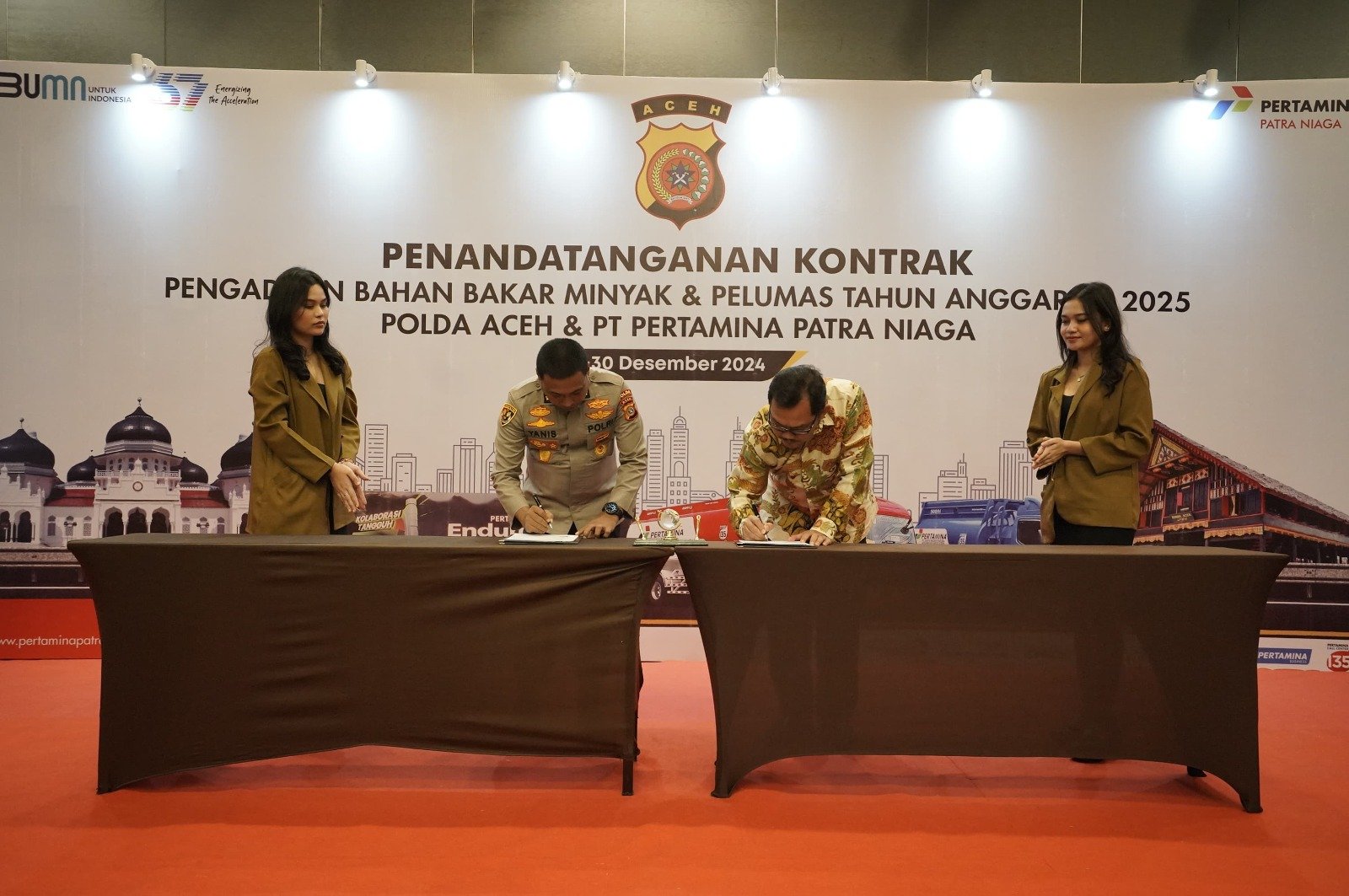 LENSAPOST.NET – Kepolisian Daerah (Polda) Aceh dan PT Pertamina Patra Niaga melaksanakan penandatanganan kontrak pengadaan Bahan Bakar Minyak dan Pelumas (BBMP) untuk tahun anggaran 2025.