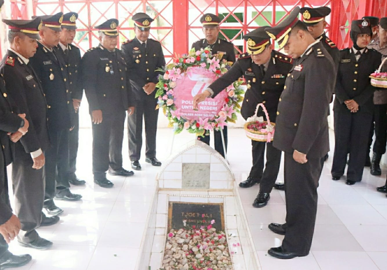 LENSAPOST.NET– Menjelang Hari Bhayangkara ke-77 tahun 2023, Polres Aceh Selatan melaksanakan Ziarah dan Tabur bunga di Makam Pahlawan T Cut Ali Desa Suaq Bakung Kecamatan Kluet Selatan Aceh Selatan, Senin 26 Juni 2023.