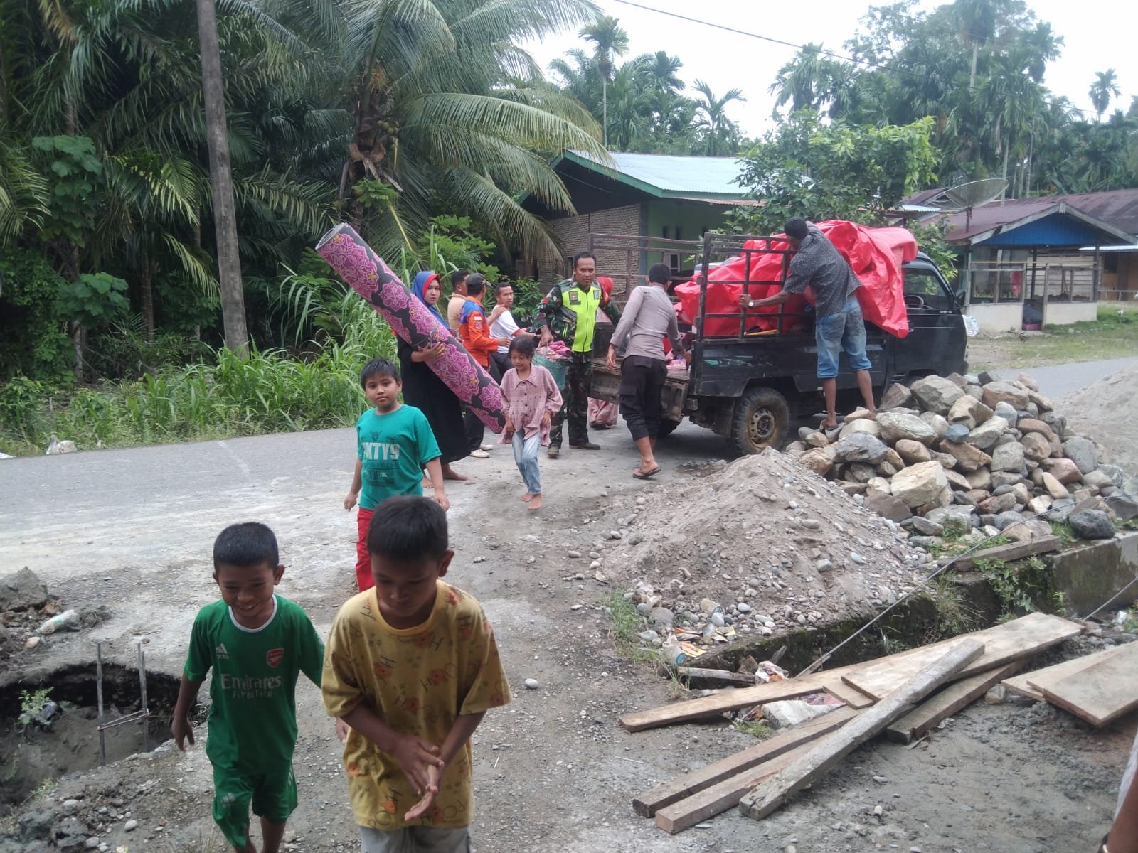 Warga terdampak banjir yang beberapa hari ini ditempatkan di Pos pengungsian,hari ini sebagian sudah banyak yang kembali kerumahnya masing masing.”Tambah Kapolsek. Sambungnya