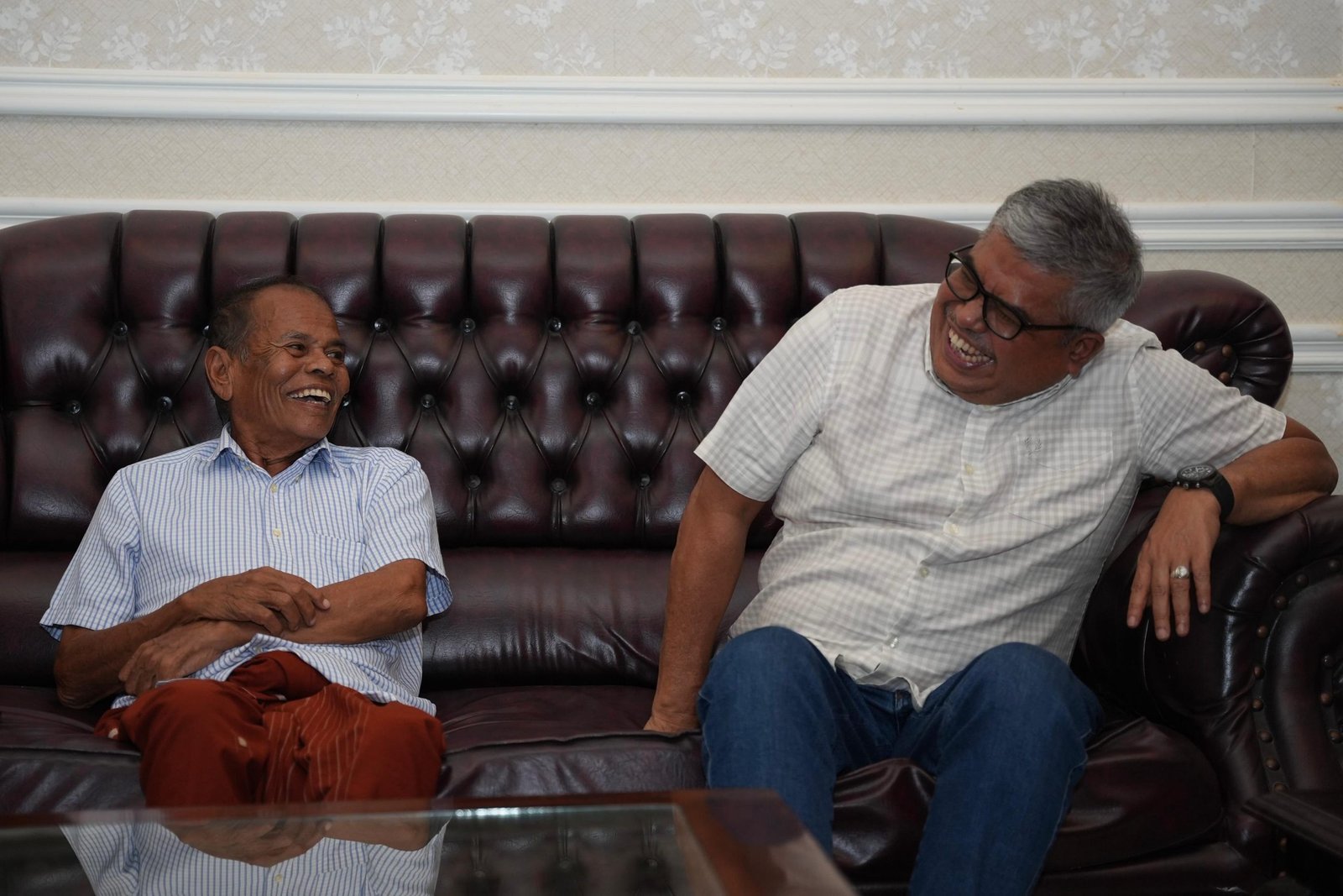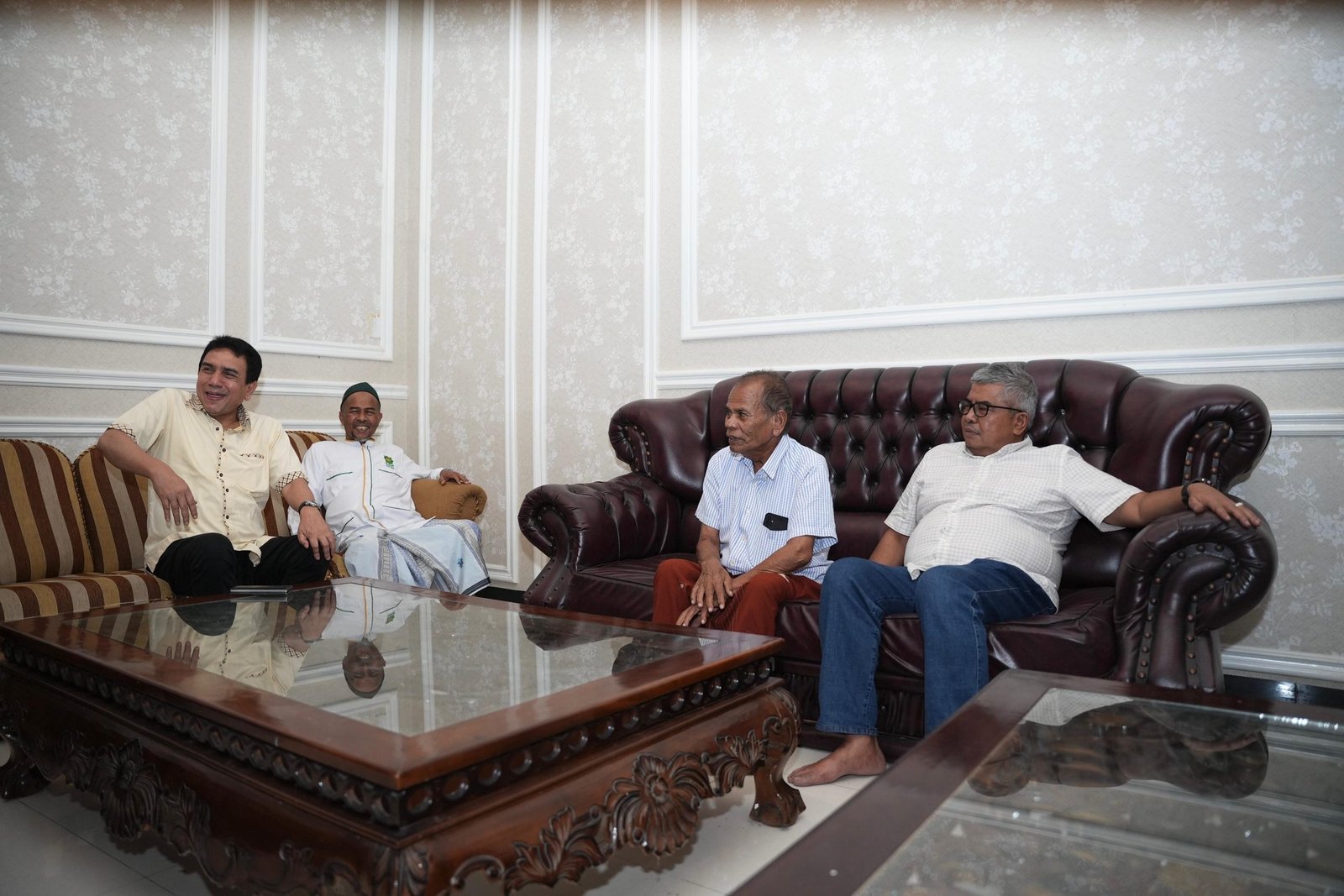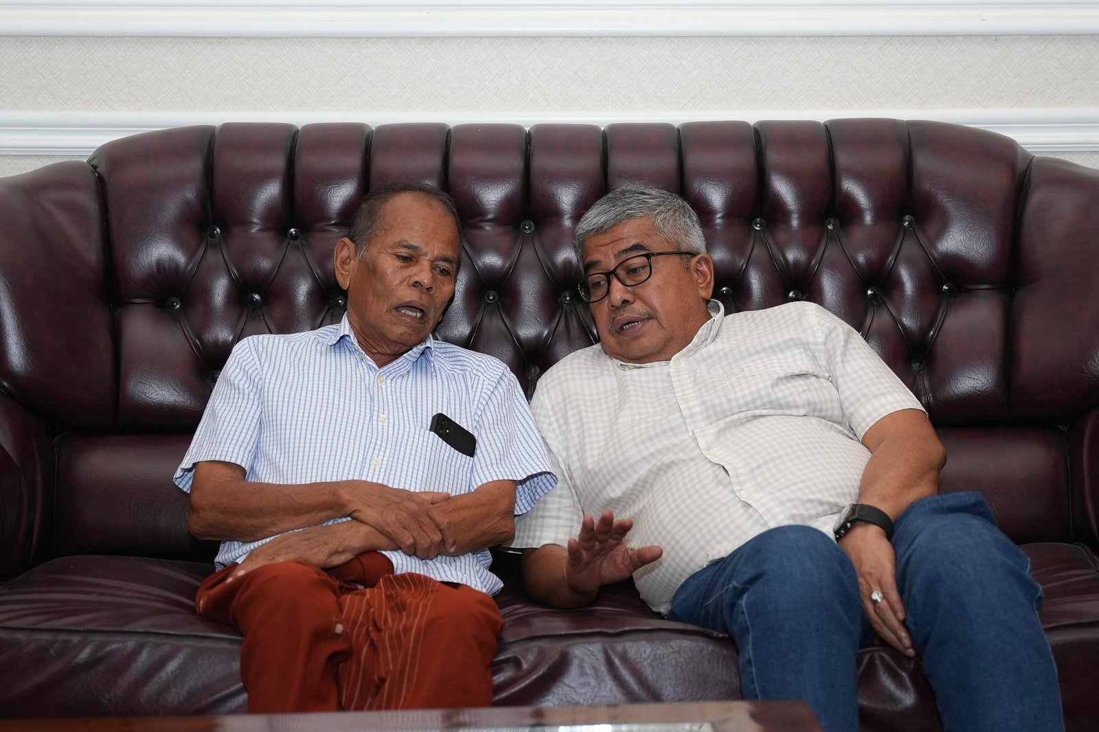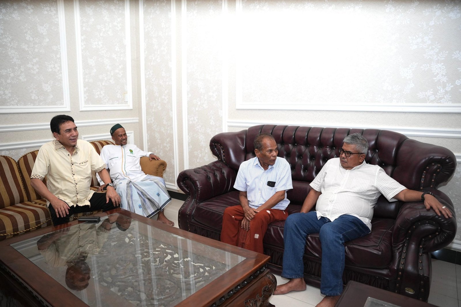 Calon gubernur Aceh nomor urut 1 Bustami Hamzah silaturahmi bersama tokoh perjuangan Gerakan Aceh Merdeka (GAM) Zakaria Saman atau lebih akrab disapa Apa Karia, di kediamannya di Keumala, Pidie, Selasa 12 November 2024.