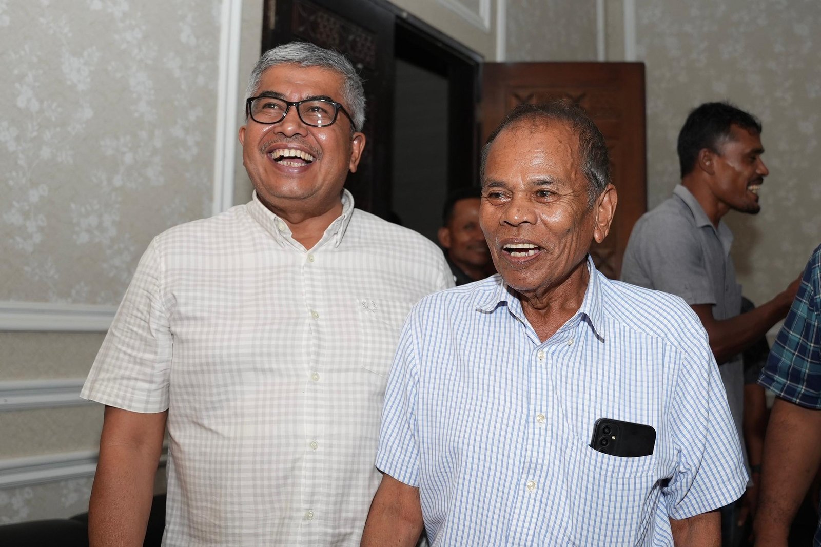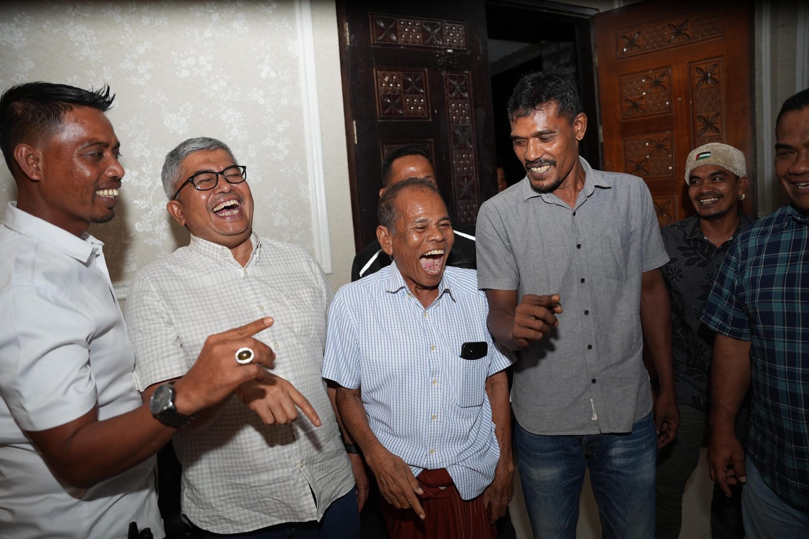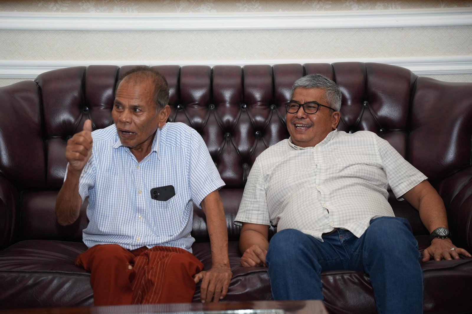 Calon gubernur Aceh nomor urut 1 Bustami Hamzah silaturahmi bersama tokoh perjuangan Gerakan Aceh Merdeka (GAM) Zakaria Saman atau lebih akrab disapa Apa Karia, di kediamannya di Keumala, Pidie, Selasa 12 November 2024.