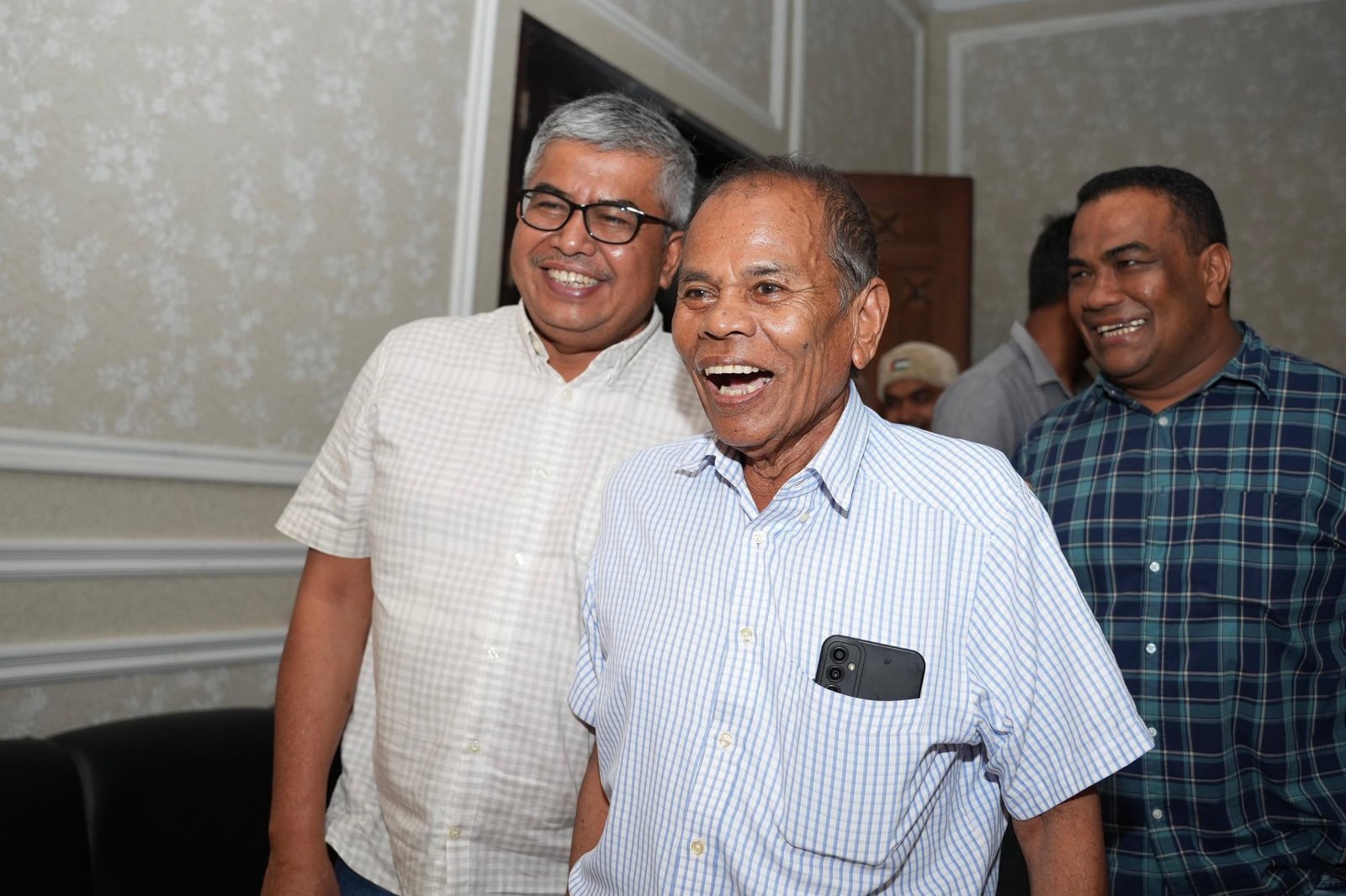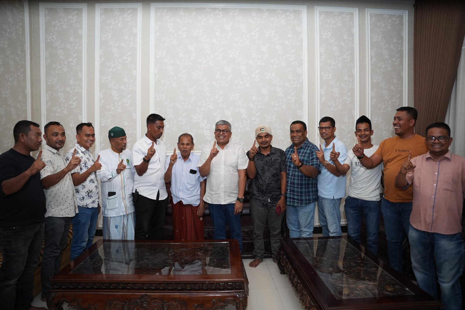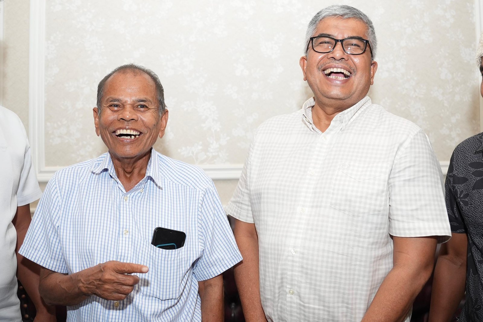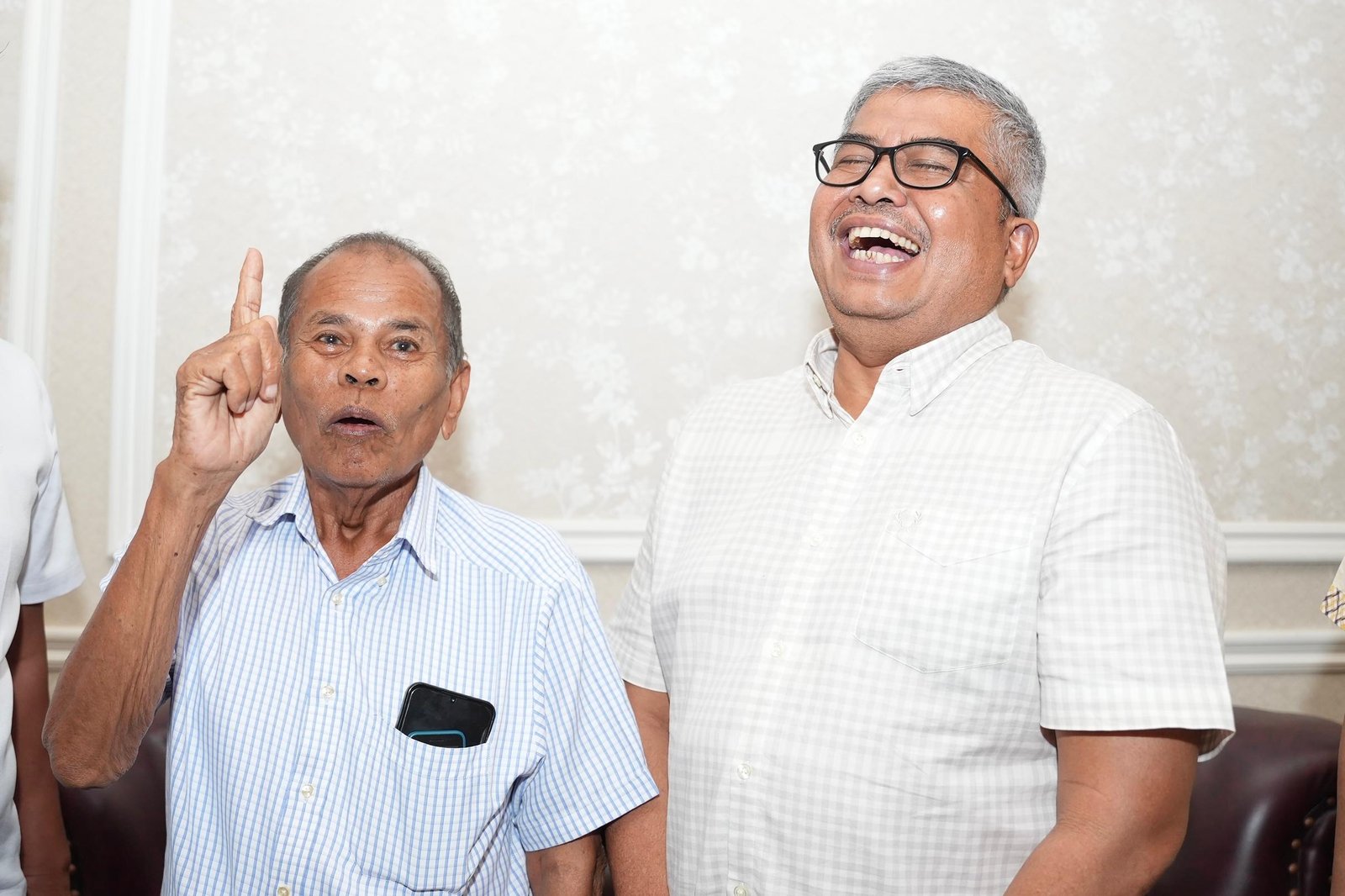Calon gubernur Aceh nomor urut 1 Bustami Hamzah silaturahmi bersama tokoh perjuangan Gerakan Aceh Merdeka (GAM) Zakaria Saman atau lebih akrab disapa Apa Karia, di kediamannya di Keumala, Pidie, Selasa 12 November 2024.