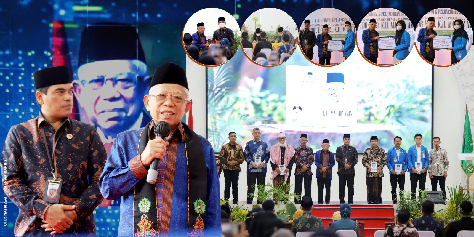 Selanjutnya, Wapres RI KH Ma’ruf Amin menyerahkan bantuan BAZNAZ berupa beasiswa pendidikan, secara simbolis kepada tiga mahasiswa, yaitu Nurul Maghfirah, Ramadhani, dan Bahrumsah Bancin.