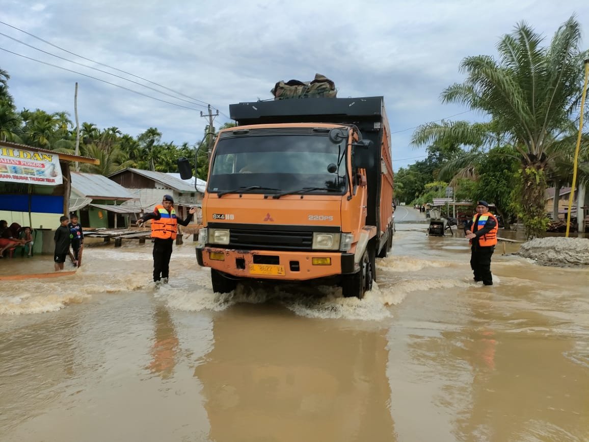 Banjir merendam badan jalan nasional setinggi 20 sampai 30 cm, sementara ketinggian air di pemukiman warga berkisar 50 sampai dengan 80 cm.